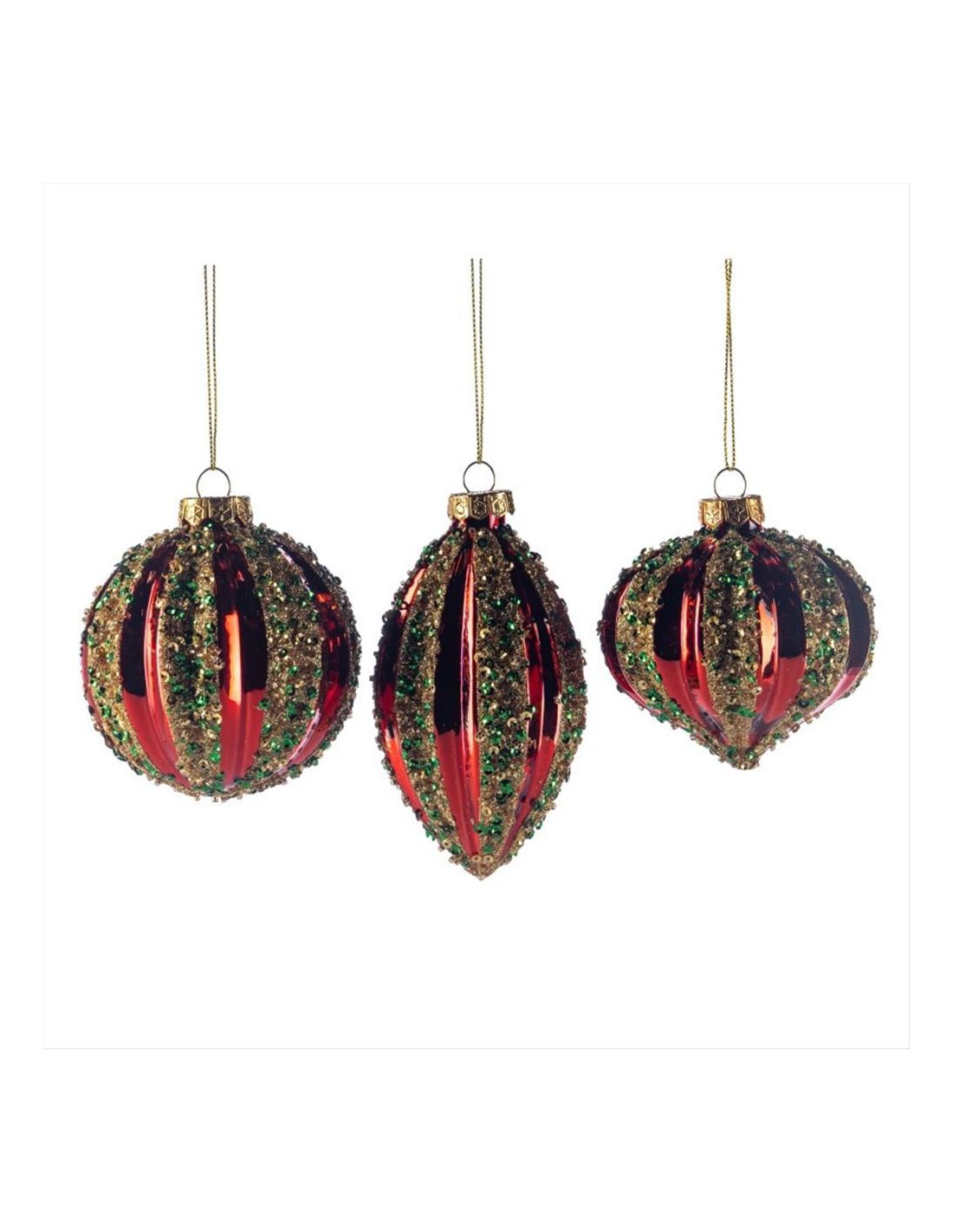 Illumina le tue feste con la Palla di Vetro d.8cm PAJETTE a Righe Rosso/Oro Goodwill 🎄💫!