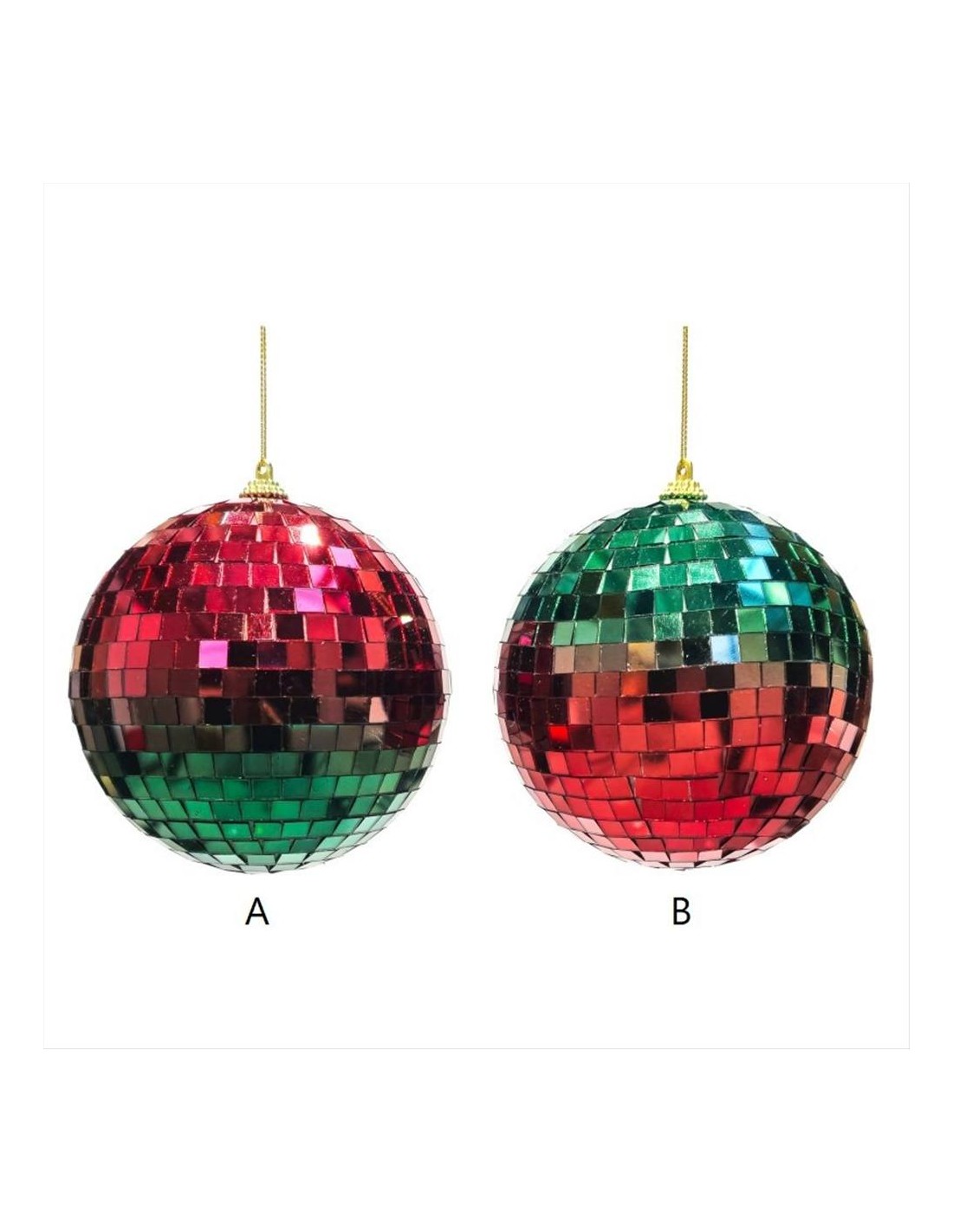 (Ogni 1,00 € speso = 1 punto, 1 punto = 0,02 € sconto)Porta un tocco di luce e allegria al tuo albero con la Palla di Vetro d.12,5cm Disco Specchi Rosso/Verde 🪩🎄!