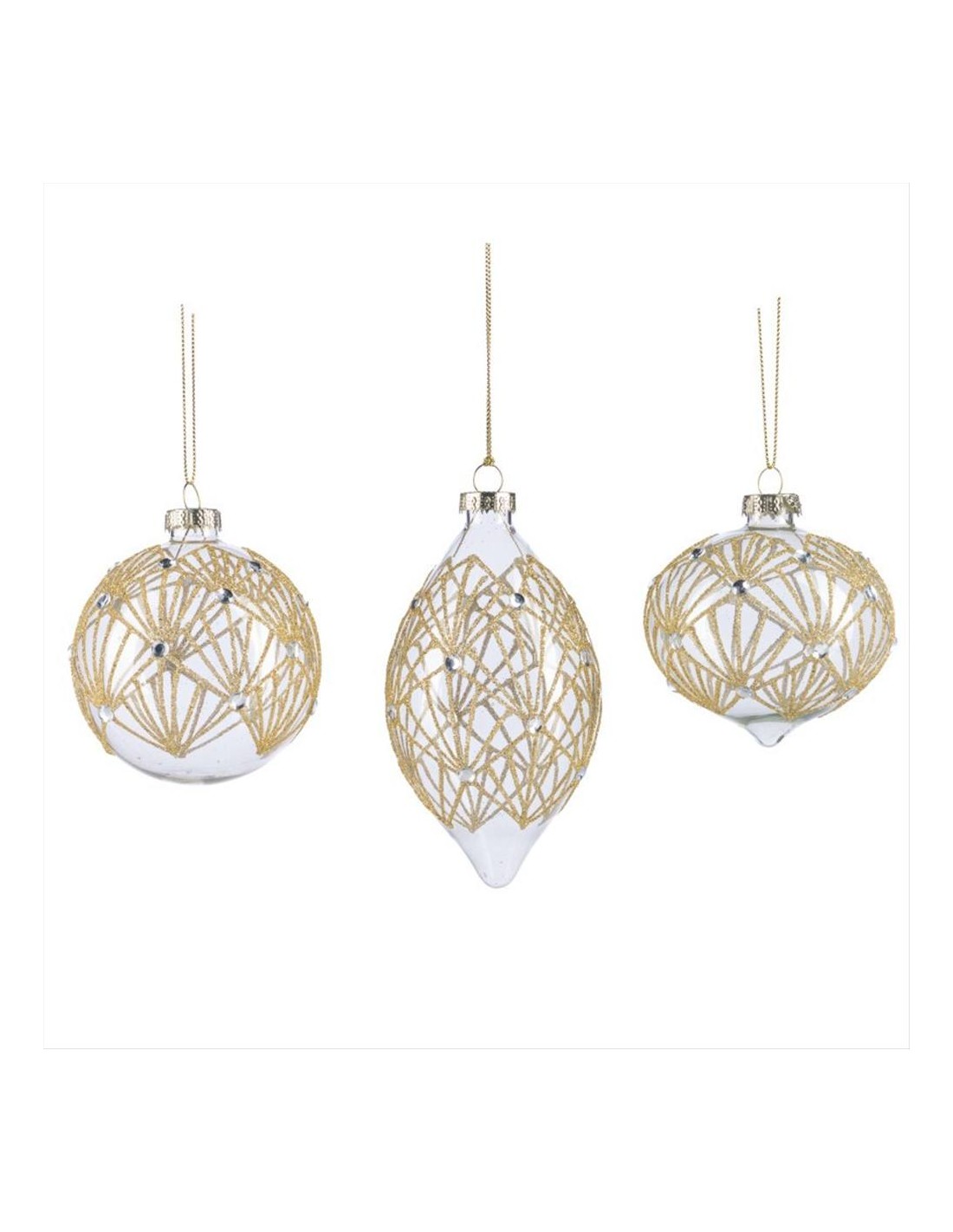 Pallina di vetro d.8cm TRASPARENTE con Ghirigori Oro/Strass - 3 varianti (1pz)