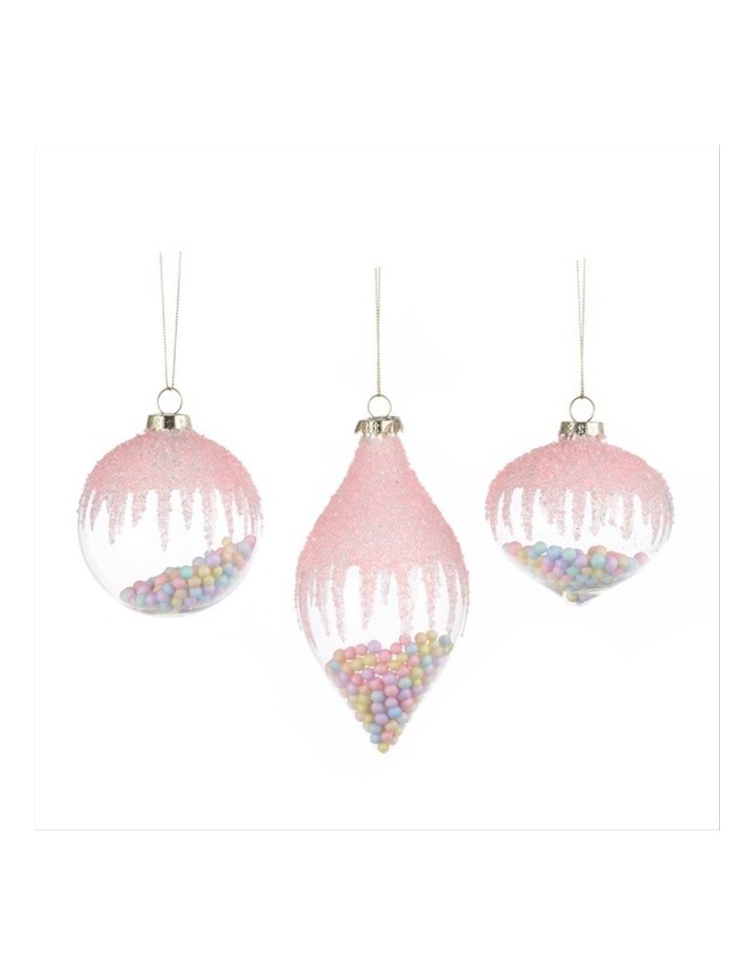 Disponibile in tre varianti – tonda, allungata e schiacciata – questa decorazione natalizia unisce la delicatezza del rosa con uno stile dolce e luminoso 🎀✨.
