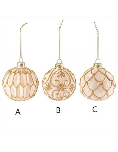 Palla di vetro D.8cm GHIRIGORI Beige e Glitter Oro - 3 varianti (1pz)