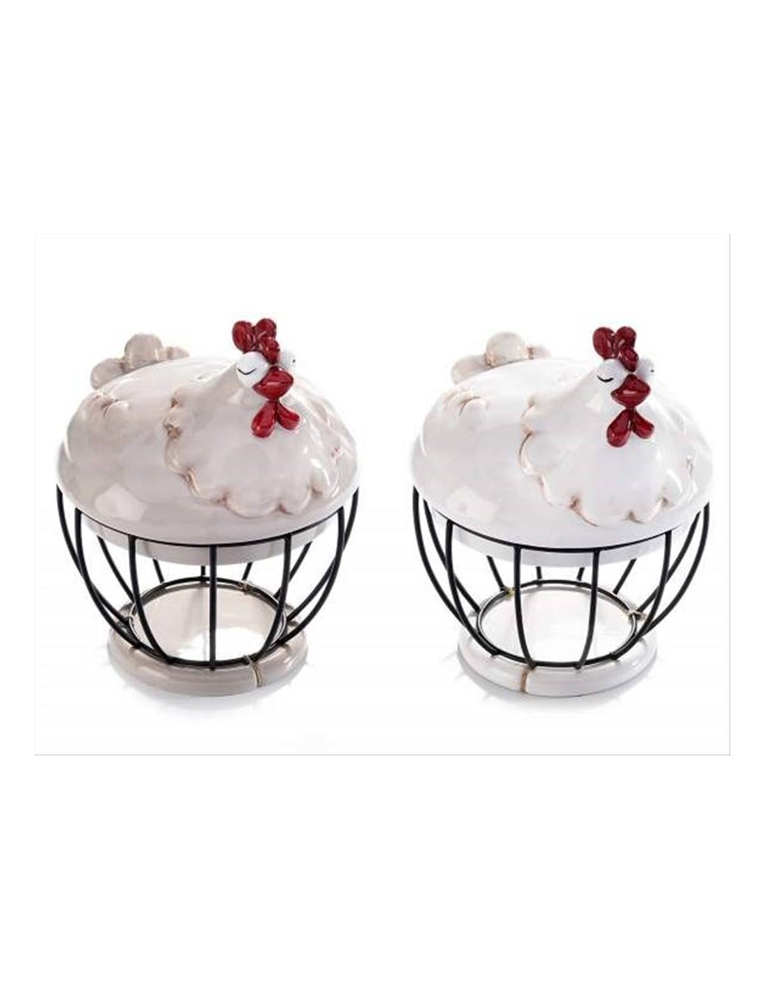 Porta un sorriso sulla tua tavola con il contenitore portauova gallina sorridente. Disponibile in grigio o bianco, con un elegante cestino in metallo e un coperchio in ceramica a forma di gallina. Ideale come barattolo portafrutta o per decorare la tavola pasquale. Un'aggiunta perfetta per ogni colazione di Pasqua. 🐣🌸