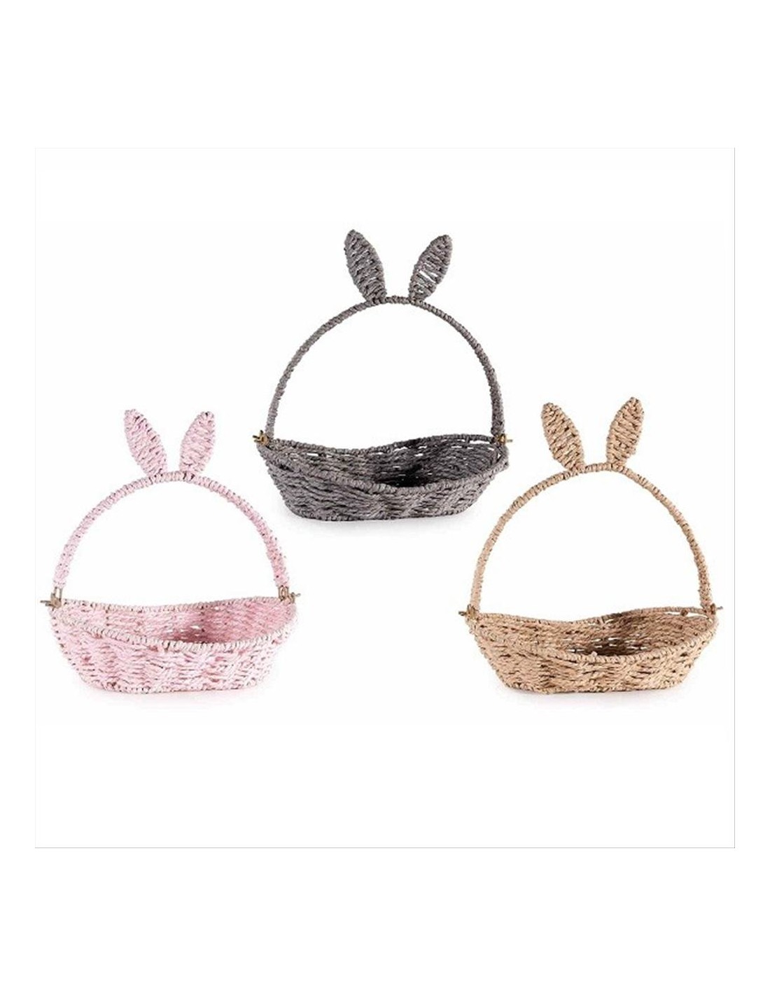 Cestino con manico e orecchie da coniglio ovale - 3 colori (1pz)