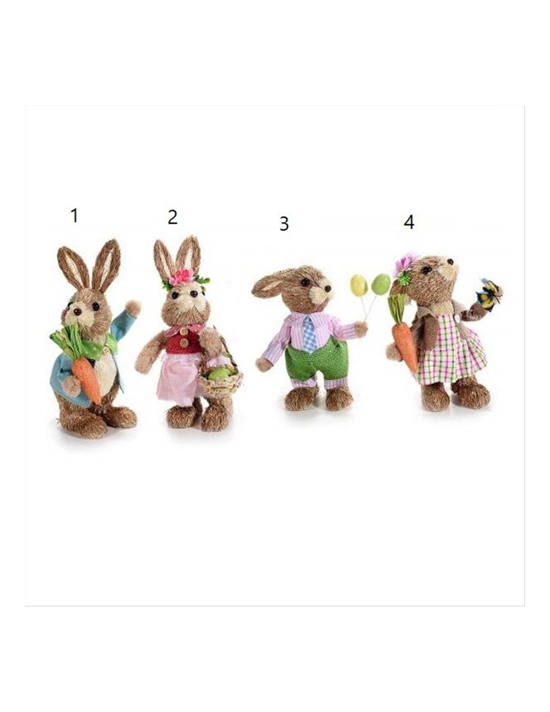 Coniglietto in fibra naturale marrone con fiori, ovetti e carota H24cm - 4 varianti (1pz) 🐰