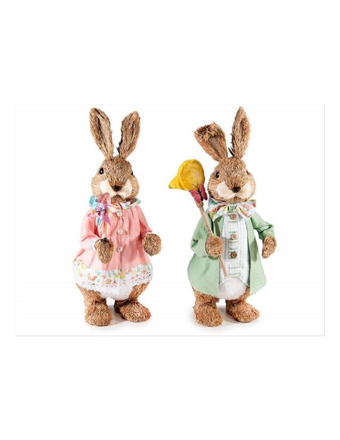 Coniglietto in fibra naturale con girandola o retino H40cm - 2 varianti (1pz) 🐰