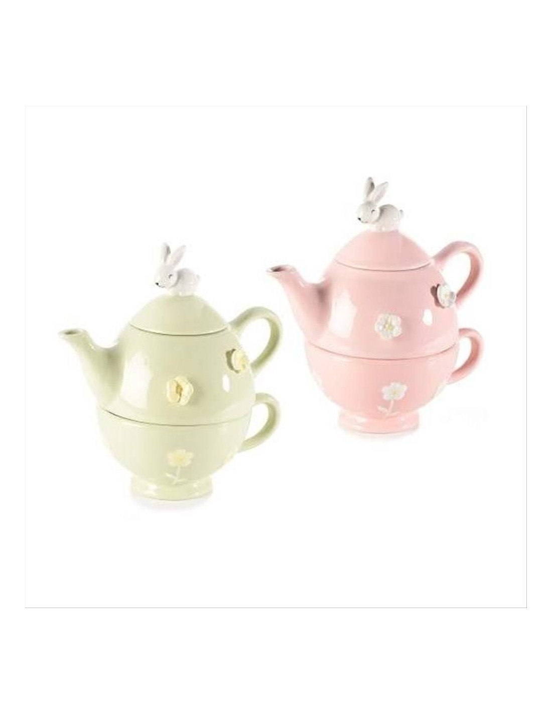 Tea for One con Coniglietto e Fiori 3D – Tazza e Teiera - 2 colori (1pz)