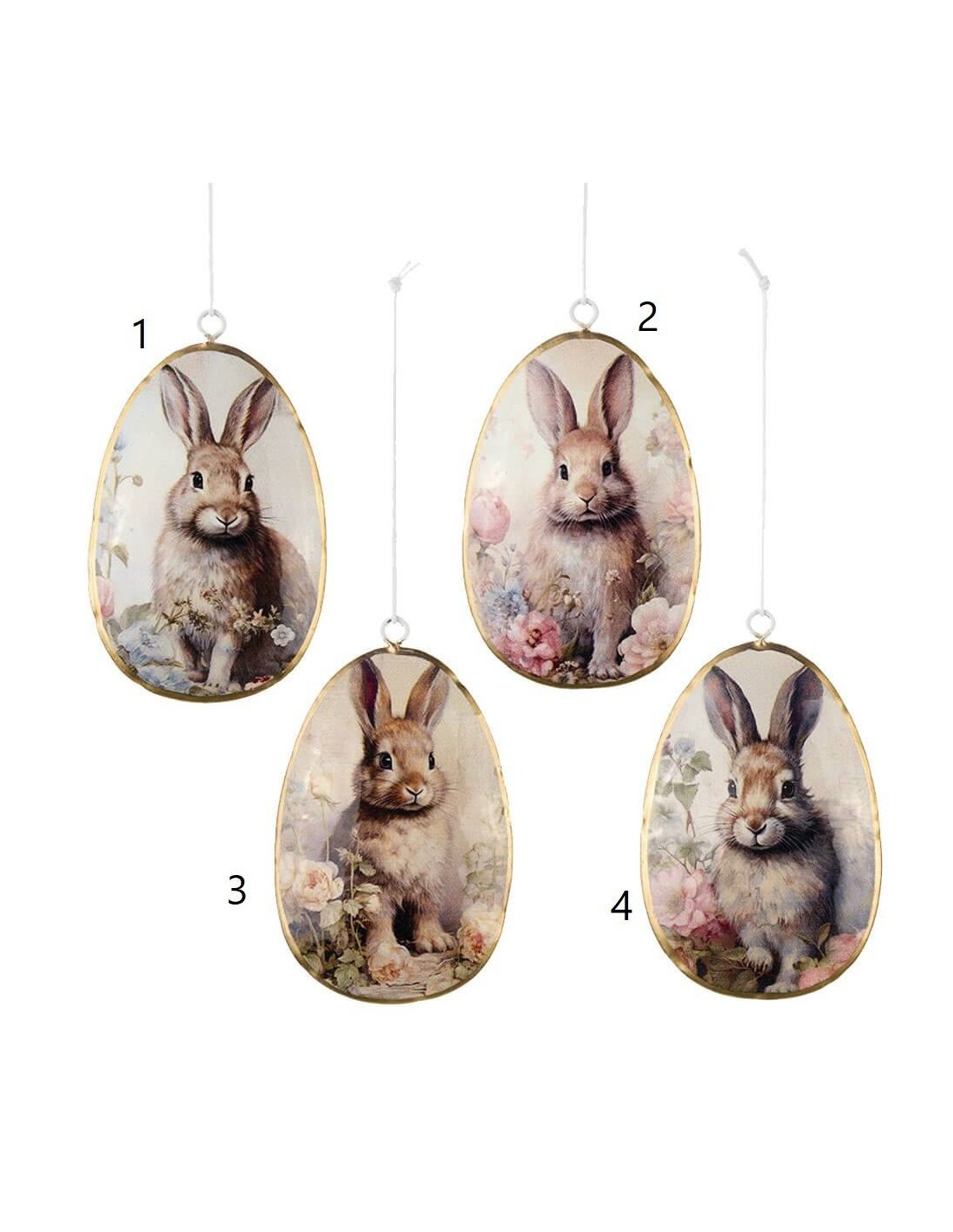 Uovo in latta con Coniglietto Pasquale dipinto H10cm - 4 fantasie (1pz)