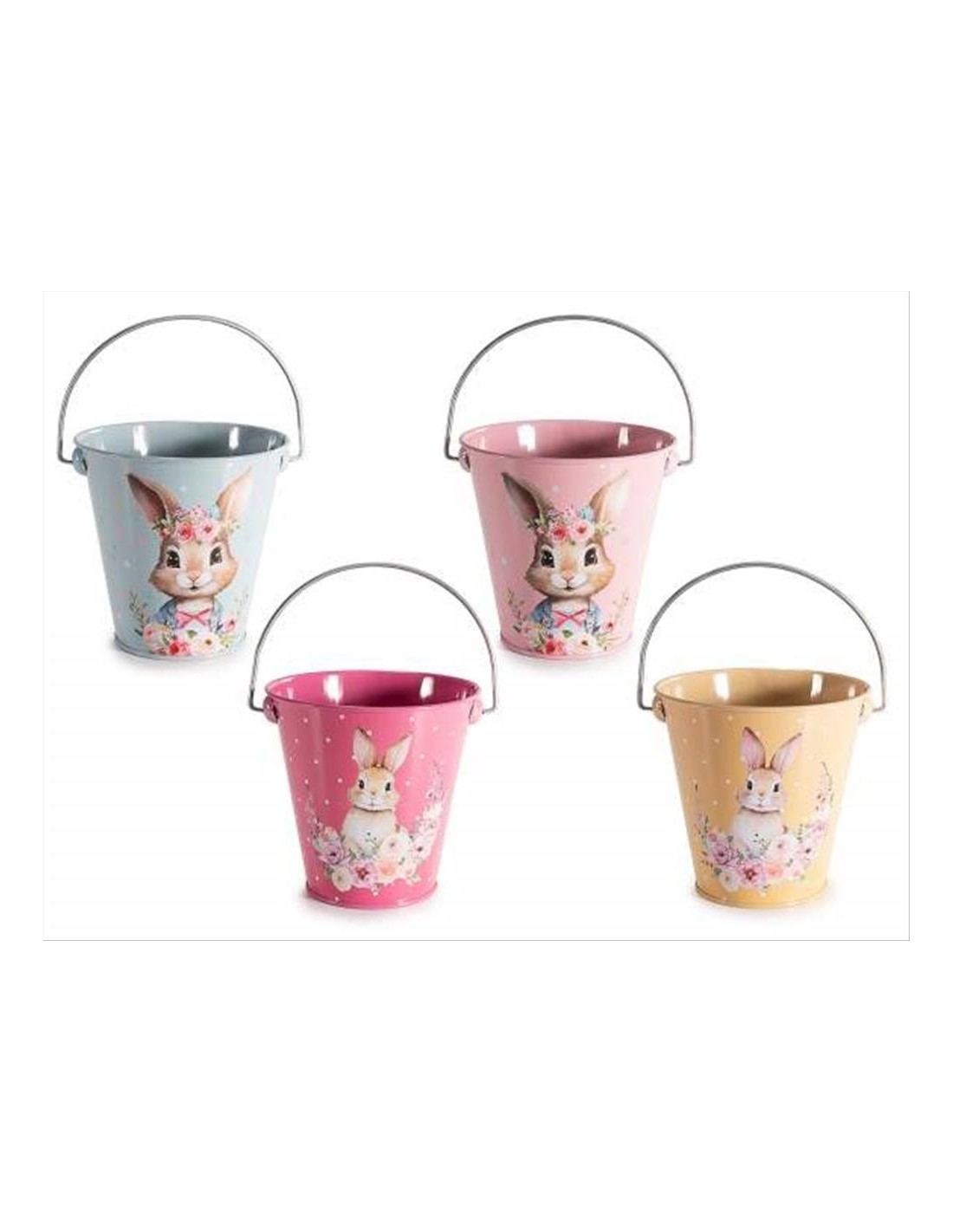 Secchiello con coniglietto e fiori H11cm - 4 varianti (1pz) 🐰