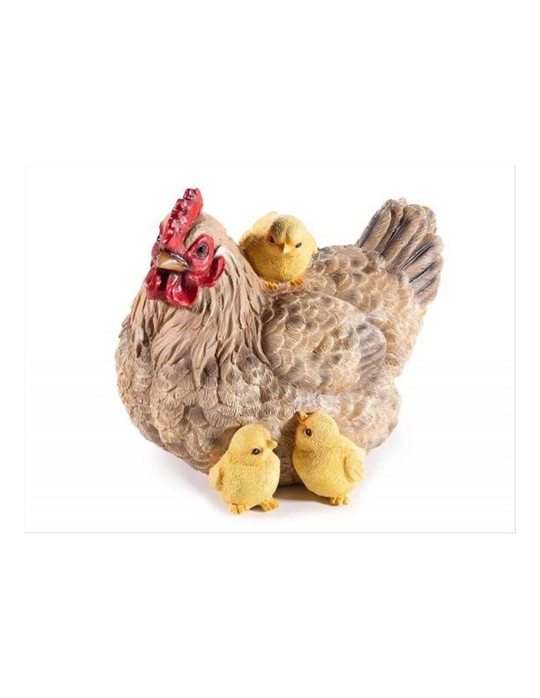 La scena raffigura una gallina circondata dai suoi piccoli pulcini, creando una composizione dolcissima che richiama la rinascita della primavera e la magia della Pasqua.