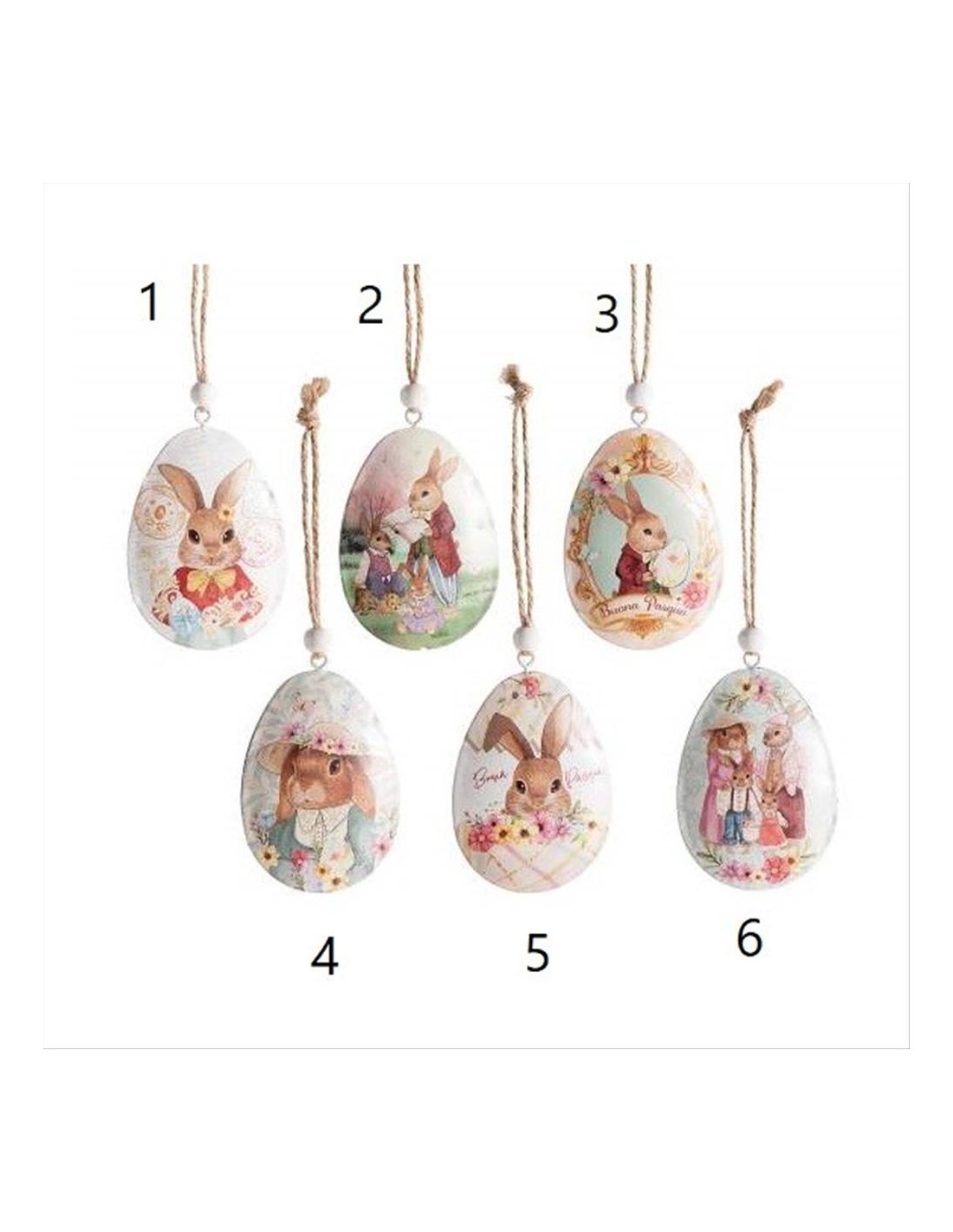 Realizzato in metallo leggero decorato, questo uovo presenta una dolce stampa con coniglietto, che lo rende ideale per decorazioni pasquali allegre e romantiche.