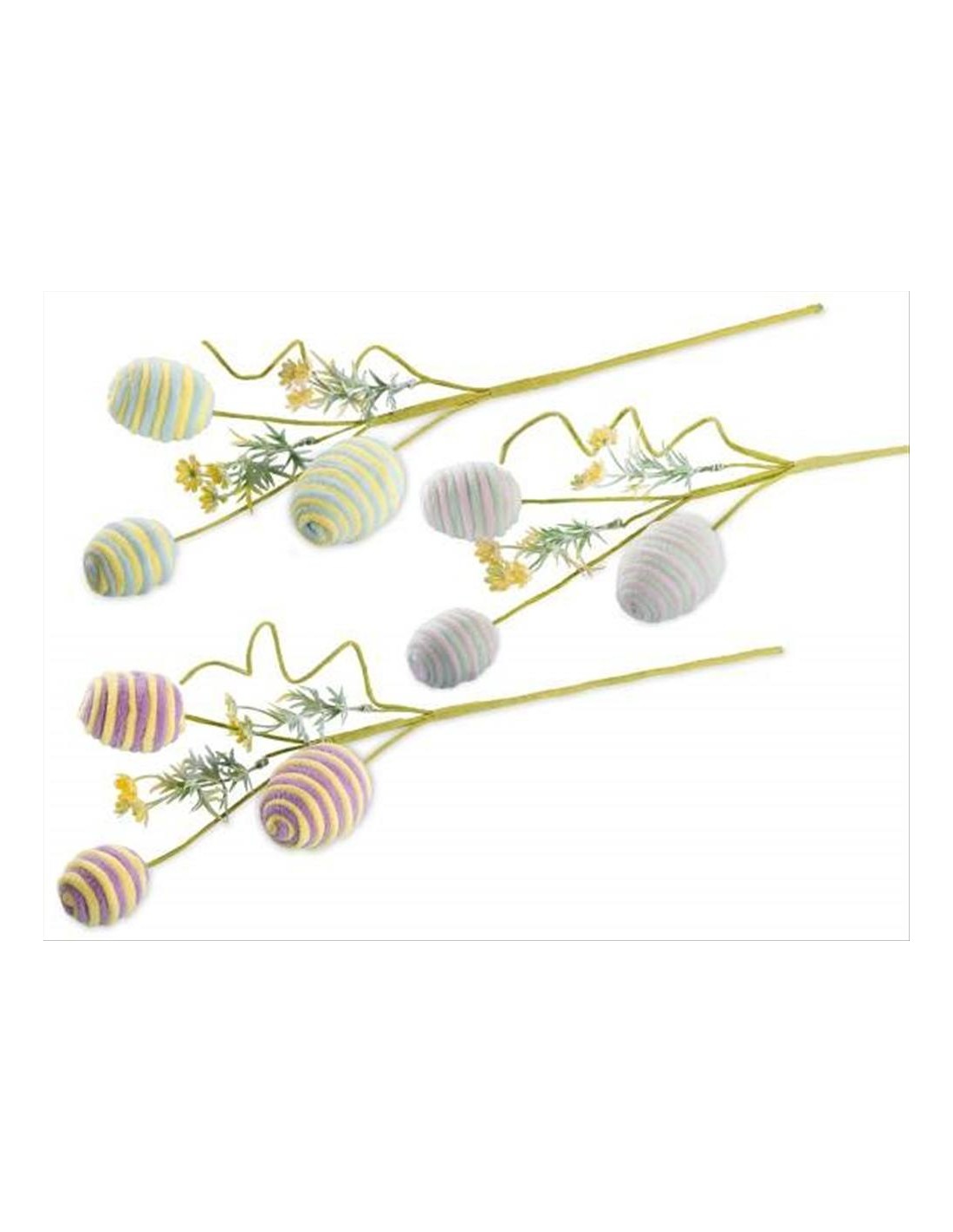 Ramo con uova pasquali e fiorellini gialli H47cm - 3 colori (1pz)