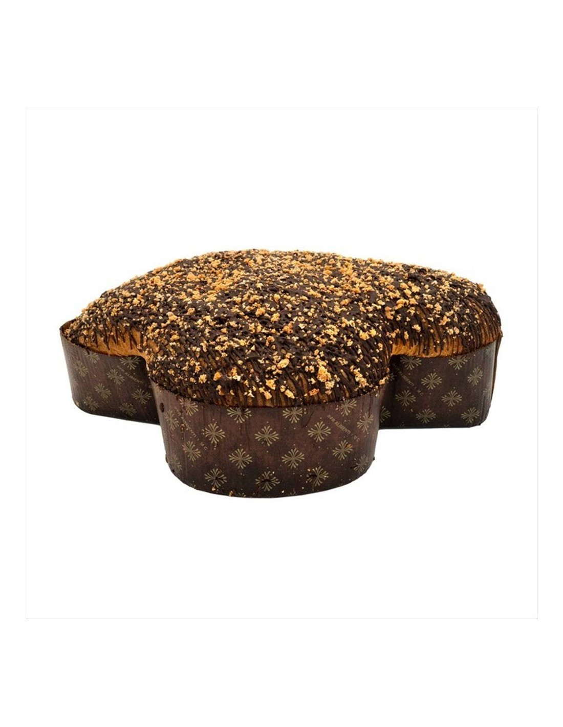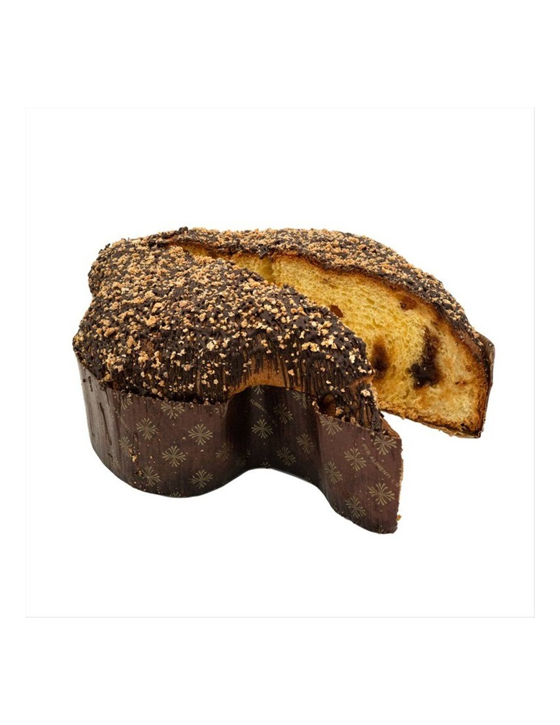 La superficie è resa ancora più irresistibile da una golosa copertura di cioccolato fondente e una croccante granella di amaretto, per un’esperienza ricca di contrasti e sapori.