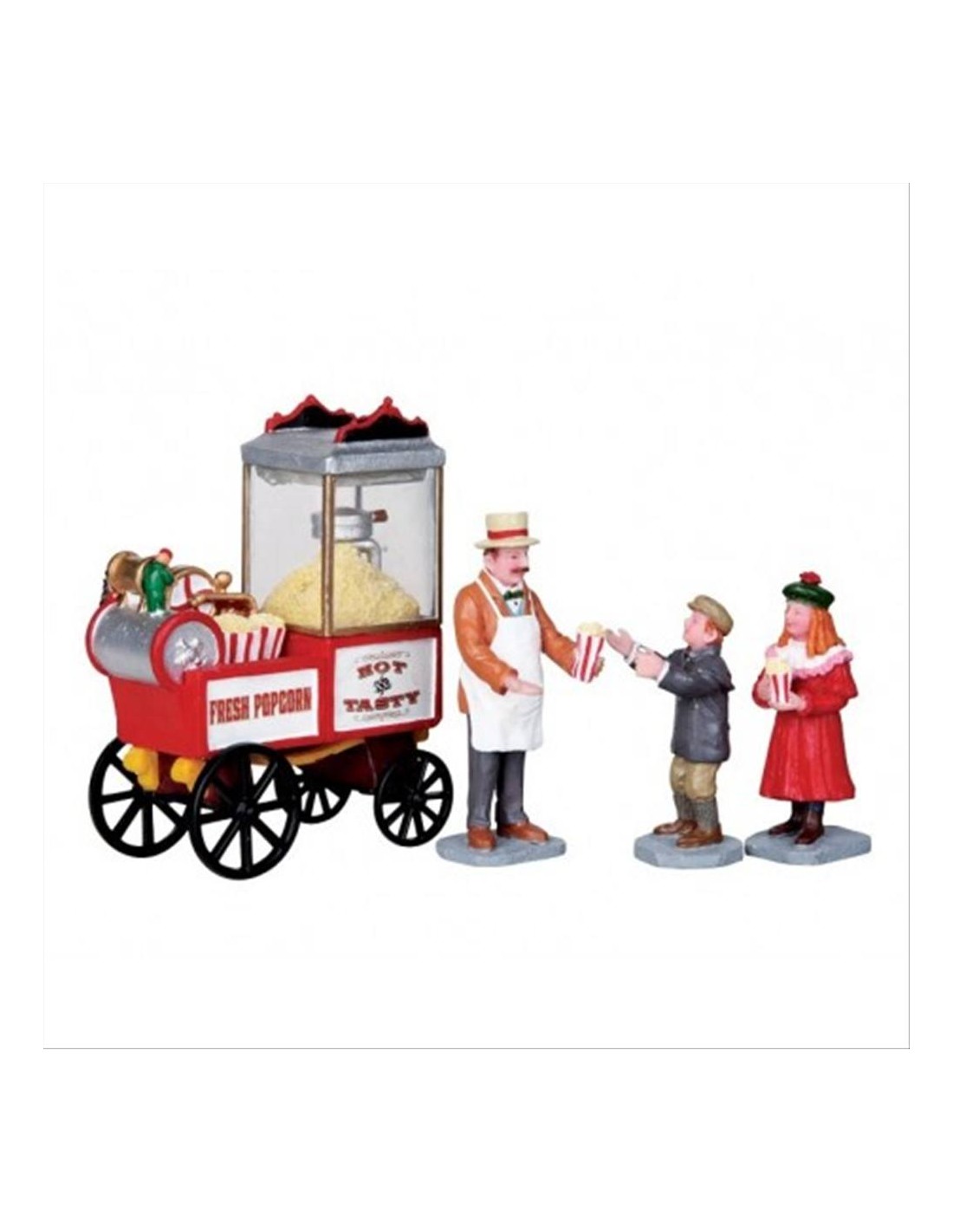 🍿 Nessun parco divertimenti è completo senza il venditore di popcorn! Aggiungi il set 4pz Popcorn Seller 02832 di Lemax al tuo villaggio.