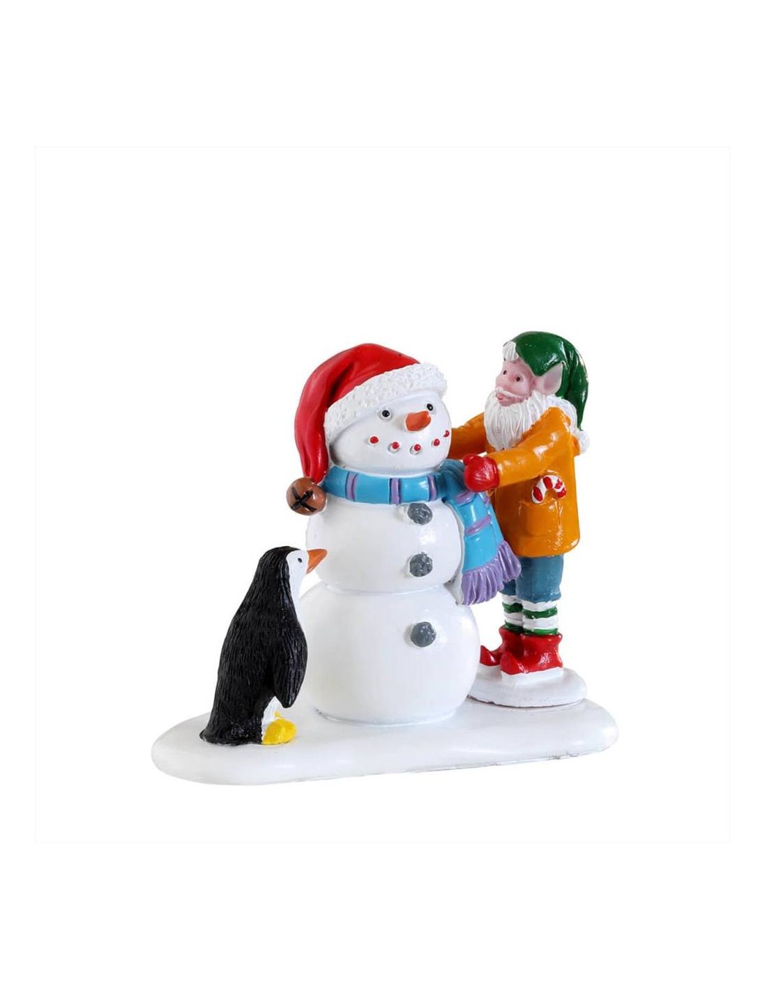 pupazzi di neve! Questo set in poliresina mostra un elfo laborioso e il suo