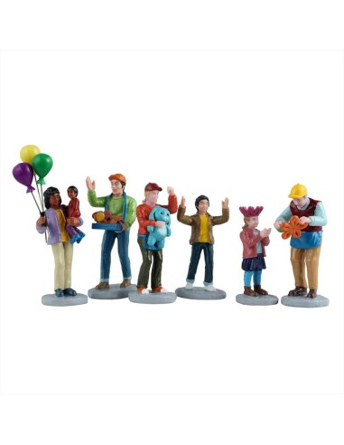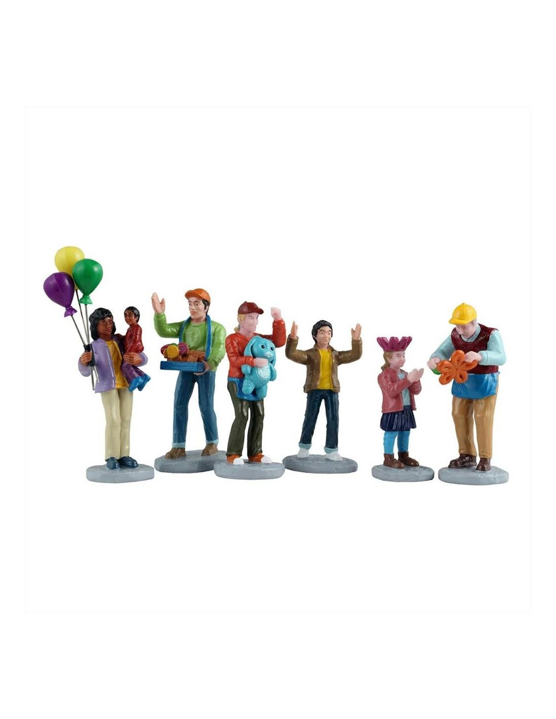Questo set di sei figurine in resina 🏠 raffigura bambini con palloncini 🎈, famiglie che si godono dolci prelibatezze 🍭 e un’atmosfera festosa piena di risate e musica natalizia 🎶✨. Con dimensioni di circa 8,7 × 16 × 3,8 cm 📏 e non elettrico, è perfetto per arricchire piazze, parchi e stand del tuo display Lemax con scene di gioia e convivialità.