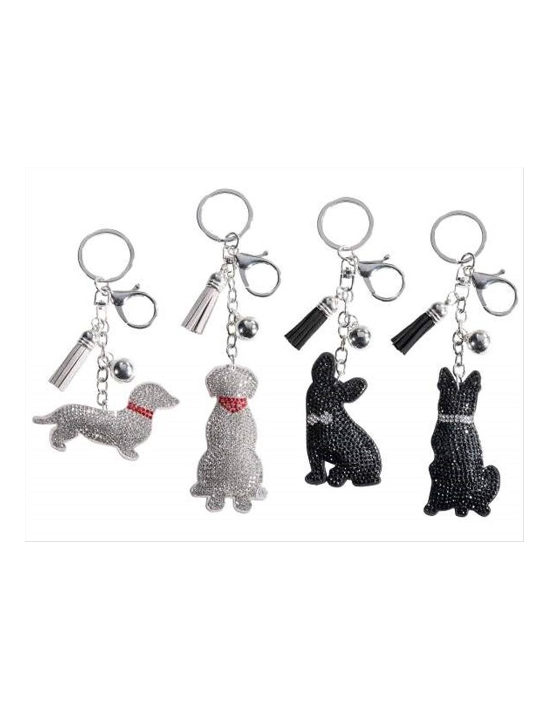 Portachiavi Cane/Gatto con strass e pendenti - 2 colori (1pz)
