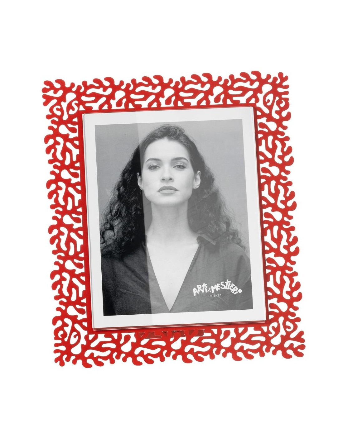 Realizzato in ferro intagliato e polimetilmetacrilato, accoglie con stile foto formato 20x25 cm, incorniciandole in un gioco di rami ispirati al corallo, simbolo di bellezza e vitalità.
