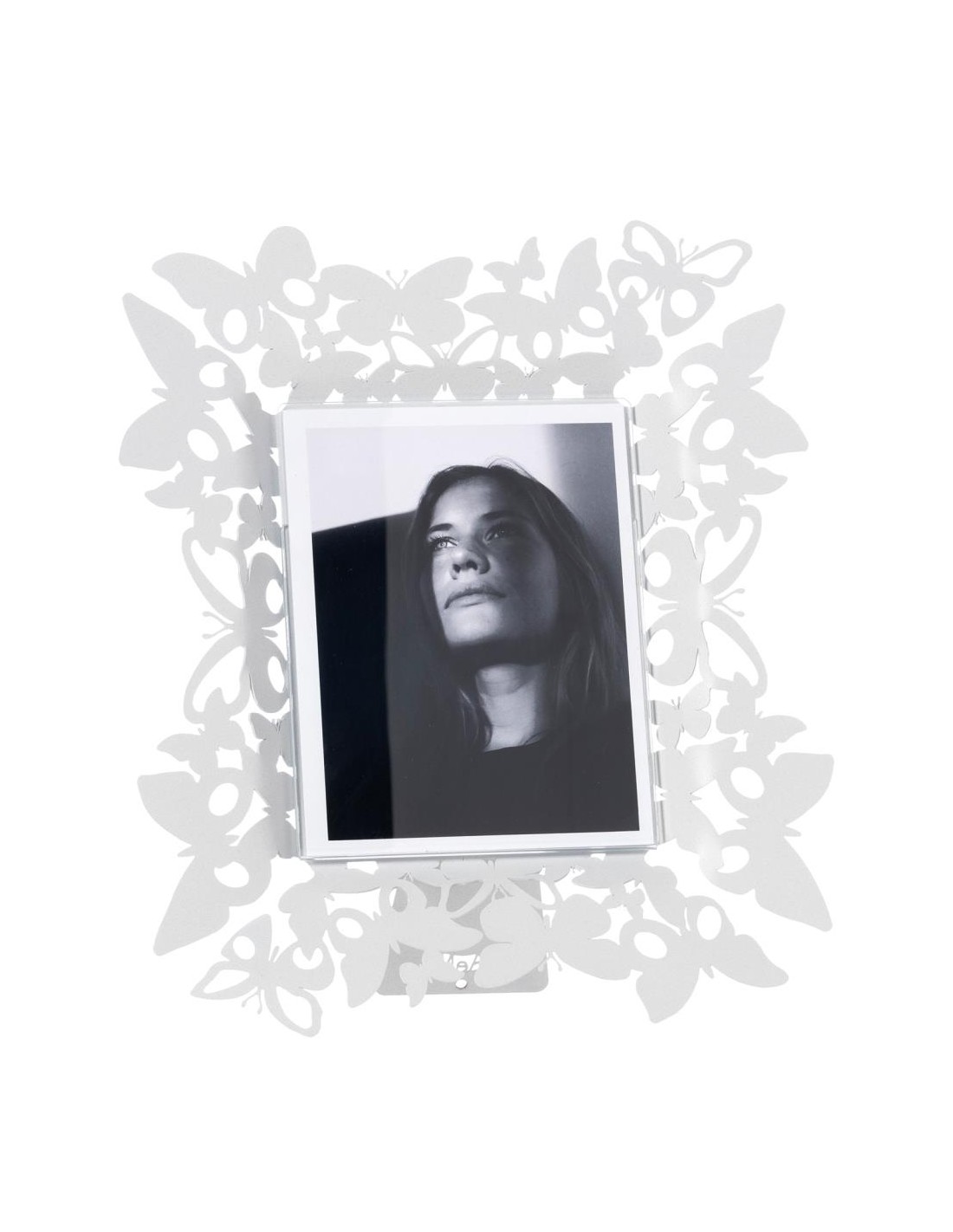 Il Portafoto FARFALLOSO verticale 26x31 cm è un accessorio di design raffinato che trasforma ogni foto in un'opera d'arte. Realizzato in ferro, è decorato con farfalle traforate e piene che creano un elegante gioco di pieni e vuoti, donando movimento e leggerezza all'intera composizione.