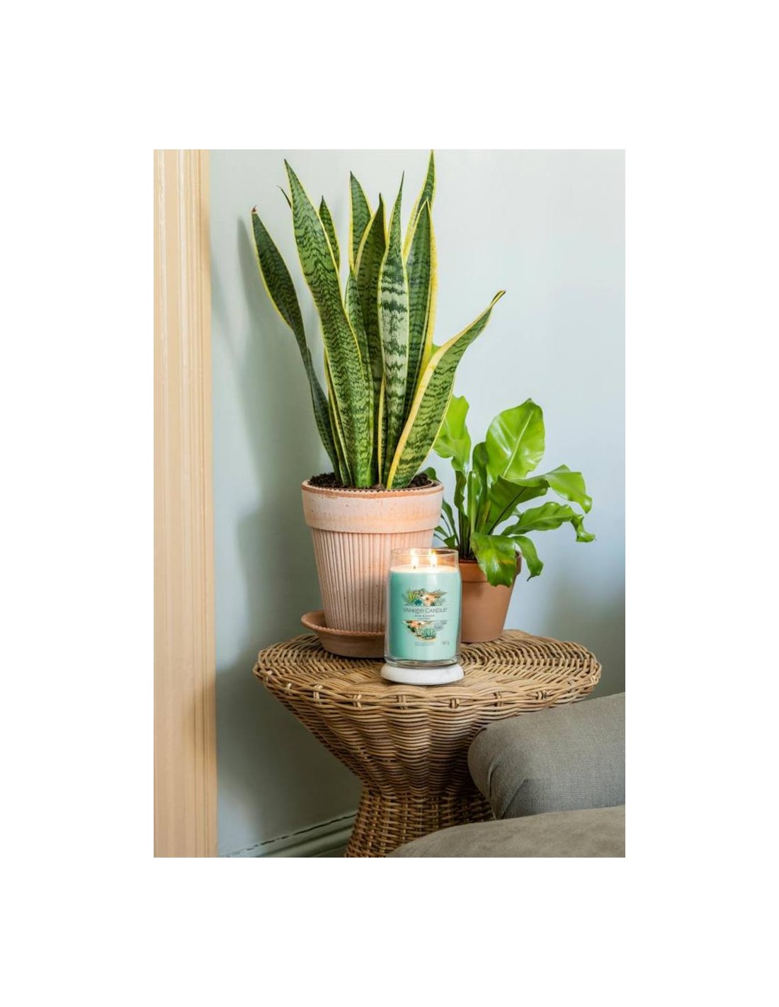 Questa candela da 567g è dotata di due stoppini naturali e una miscela di cera di soia di alta qualità, garantendo una combustione pulita e costante che dura fino a 90 ore. Con un design elegante e colori vivaci, si integra perfettamente con qualsiasi ambiente, creando un'atmosfera fresca e rilassante.