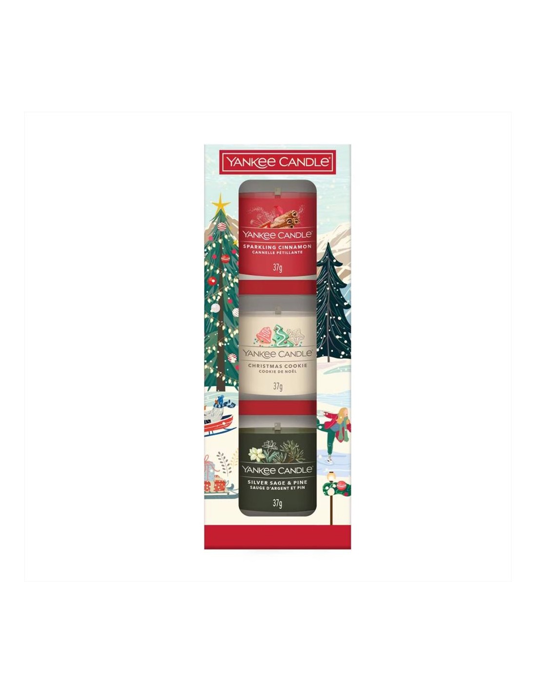 🌟 Contiene 3 votive da 37g con profumazioni natalizie assortite (Red Apple Wreath, Vanilla cupcake e Sage & Citrus).