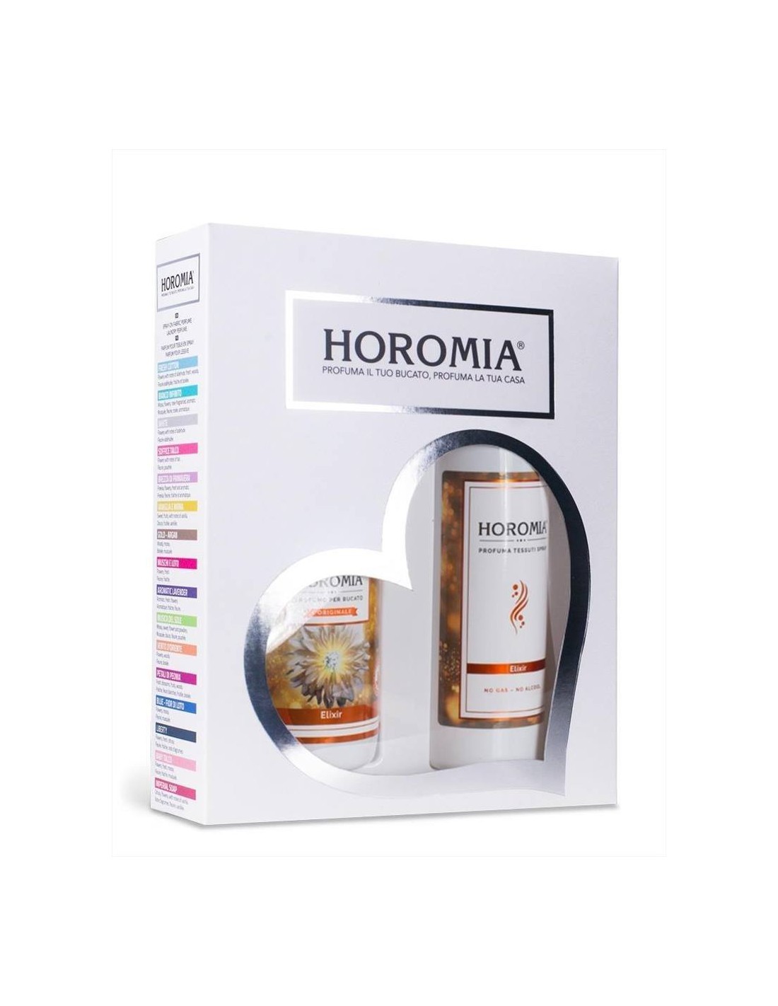 HOROTWINS è una confezione regalo contenente il profuma bucato Horomia e il profumo spray per tessuti della stessa fragranza.