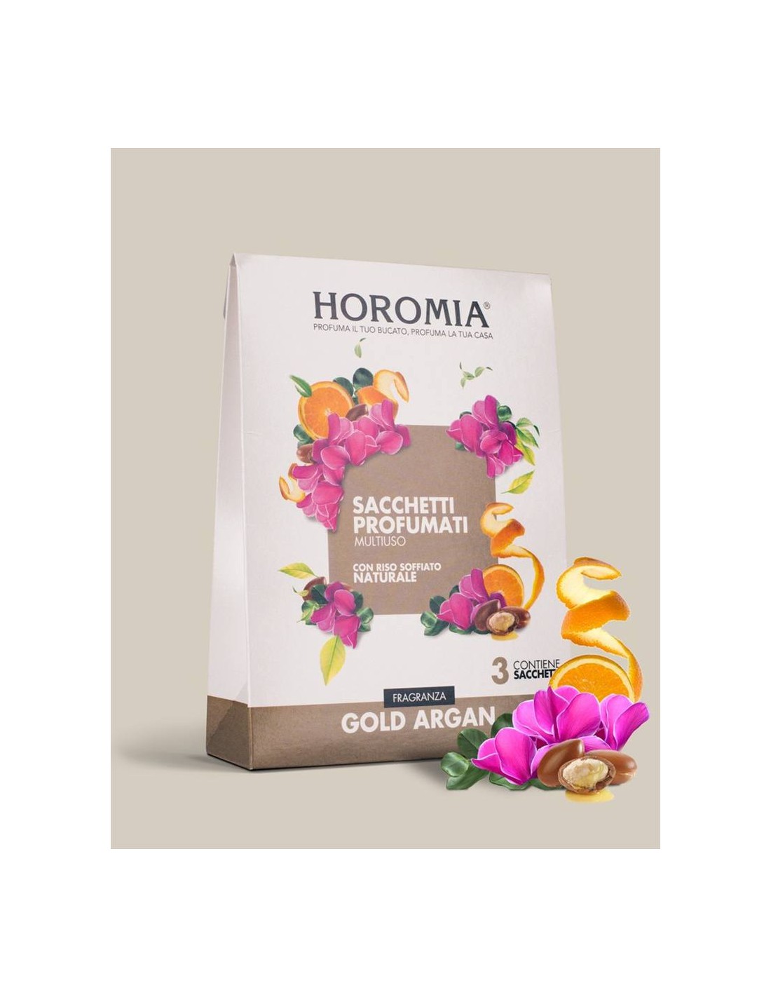 L’unicità e l’intensità delle fragranze Horomia ora in Sacchetti Profumati Multiuso. Creati con riso soffiato naturale non alimentare, i sacchetti profumati Horomia sono formulati per donare ai tuoi capi e alla tua casa il profumo unico e inconfondibile della tua fragranza preferita. Ogni confezione contiene tre sacchetti profumati avvolti in una busta trasparente ad alta protezione, per un profumo intenso e duraturo fino a 12 settimane.