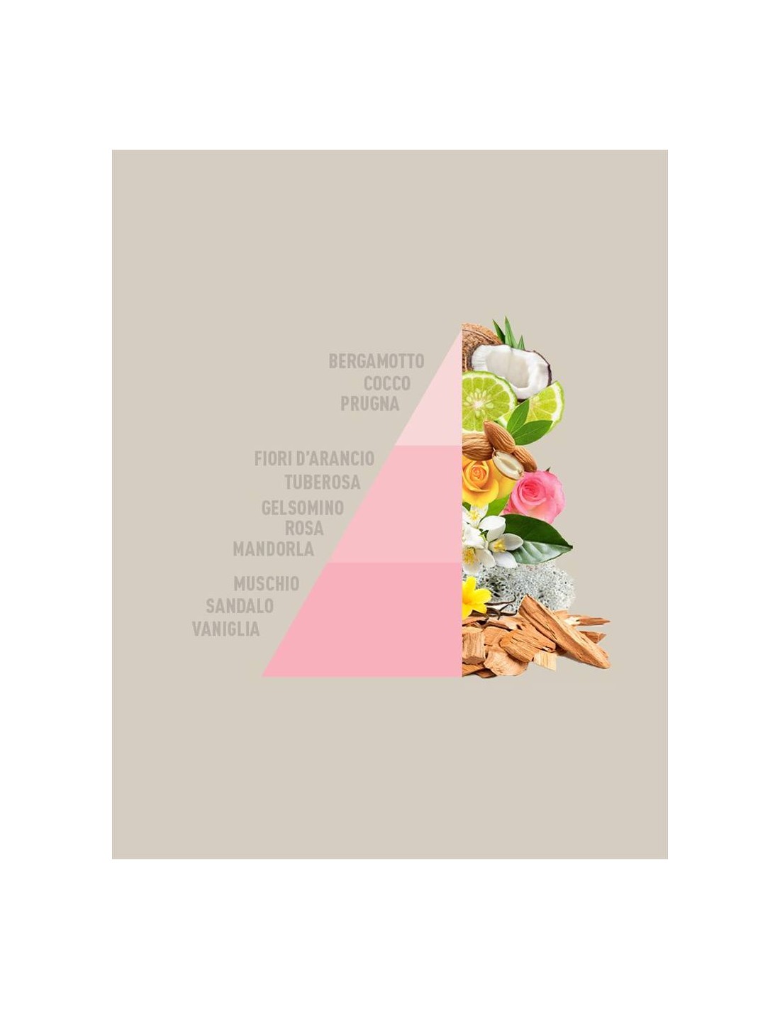 Una delizia costruita attorno a un irresistibile duo di fiori di mandorlo e fiori d'arancio. La frizzante freschezza di bergamotto illumina un cuore di mandorla e tuberosa in un'armonia ipnotica. Alla base, la firma muschiata di vaniglia è più deliziosa che mai, esaltata dalla cremosità del sandalo.