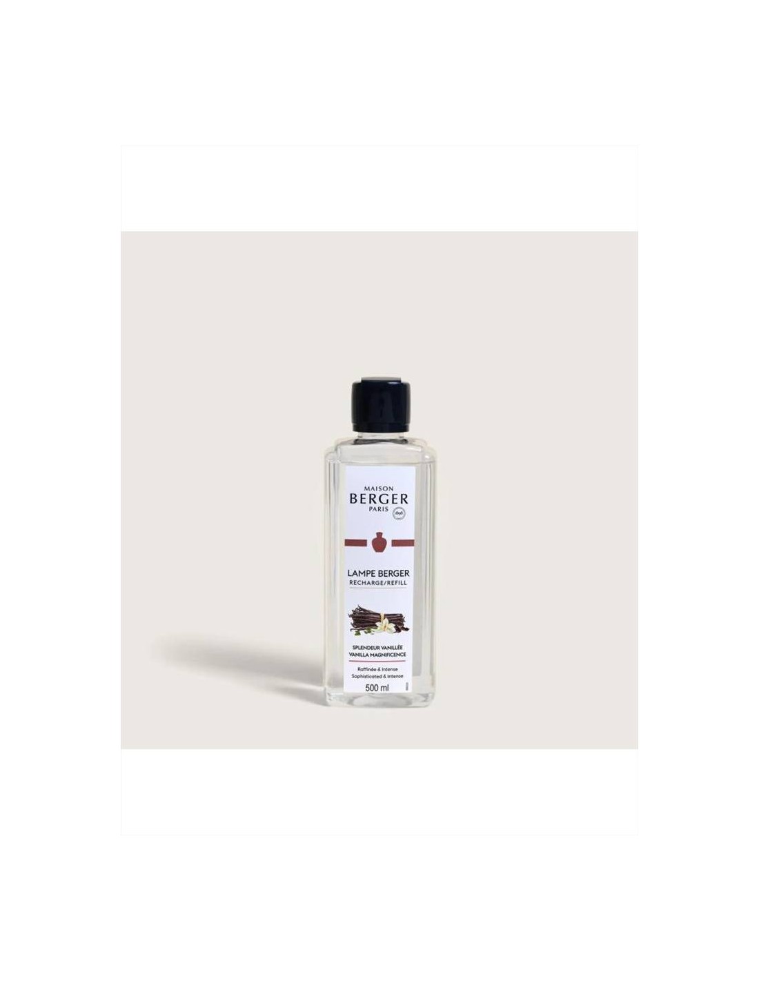 Ricarica 500ml Splendeur Vanillée per Lampe Berger, una fragranza opulenta e calda di vaniglia bourbon, rum, cacao e agrumi, per un'esperienza olfattiva lussuosa.