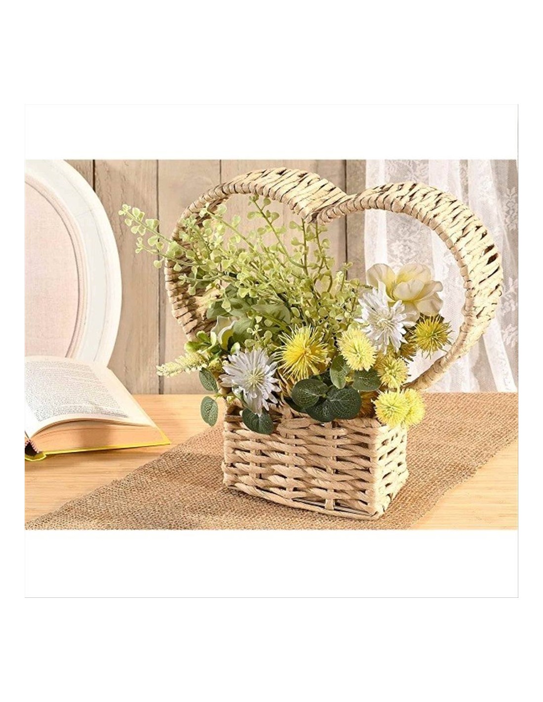 💖 Cesto intrecciato a forma di cuore: dona un tocco romantico ai tuoi spazi con questo cesto elegante e pratico. Con sacchetto interno in PVC impermeabile, è ideale per composizioni floreali fresche o per inserire un vaso.