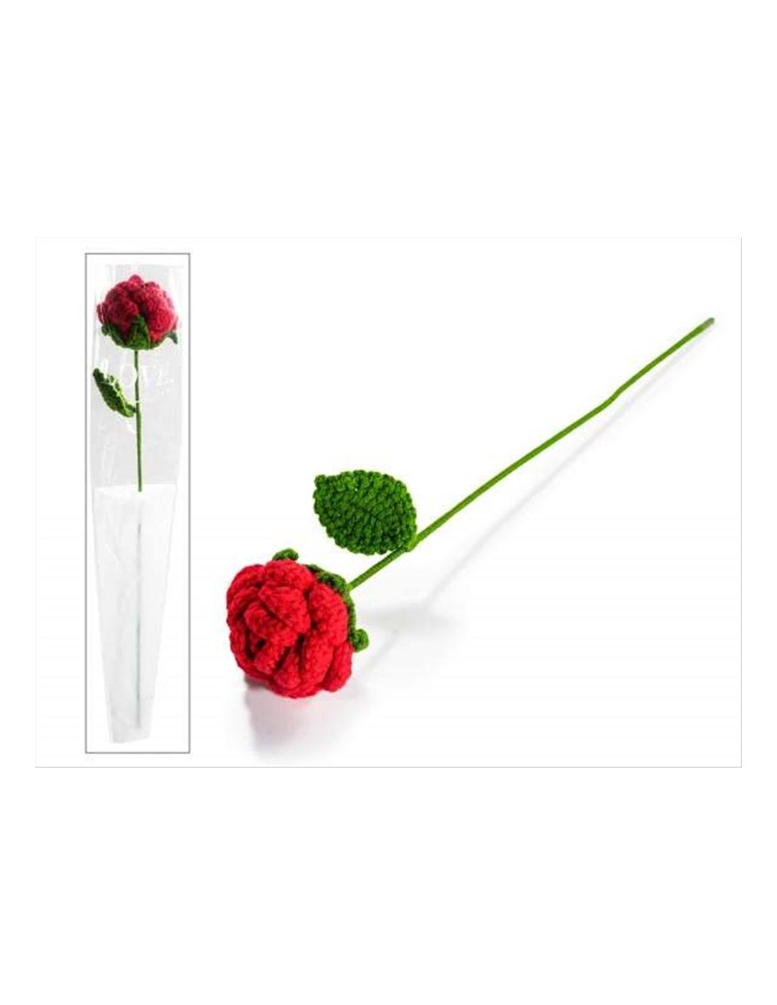 Realizzata ad uncinetto, è curata nei dettagli e completa di gambo e foglia modellabili, così puoi piegarla e sistemarla come preferisci per creare la posa più bella. Il suo colore rosso intenso la rende simbolo perfetto di amore, passione e affetto.