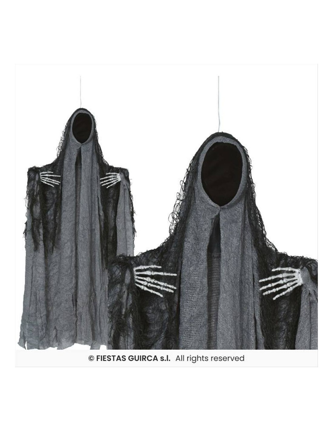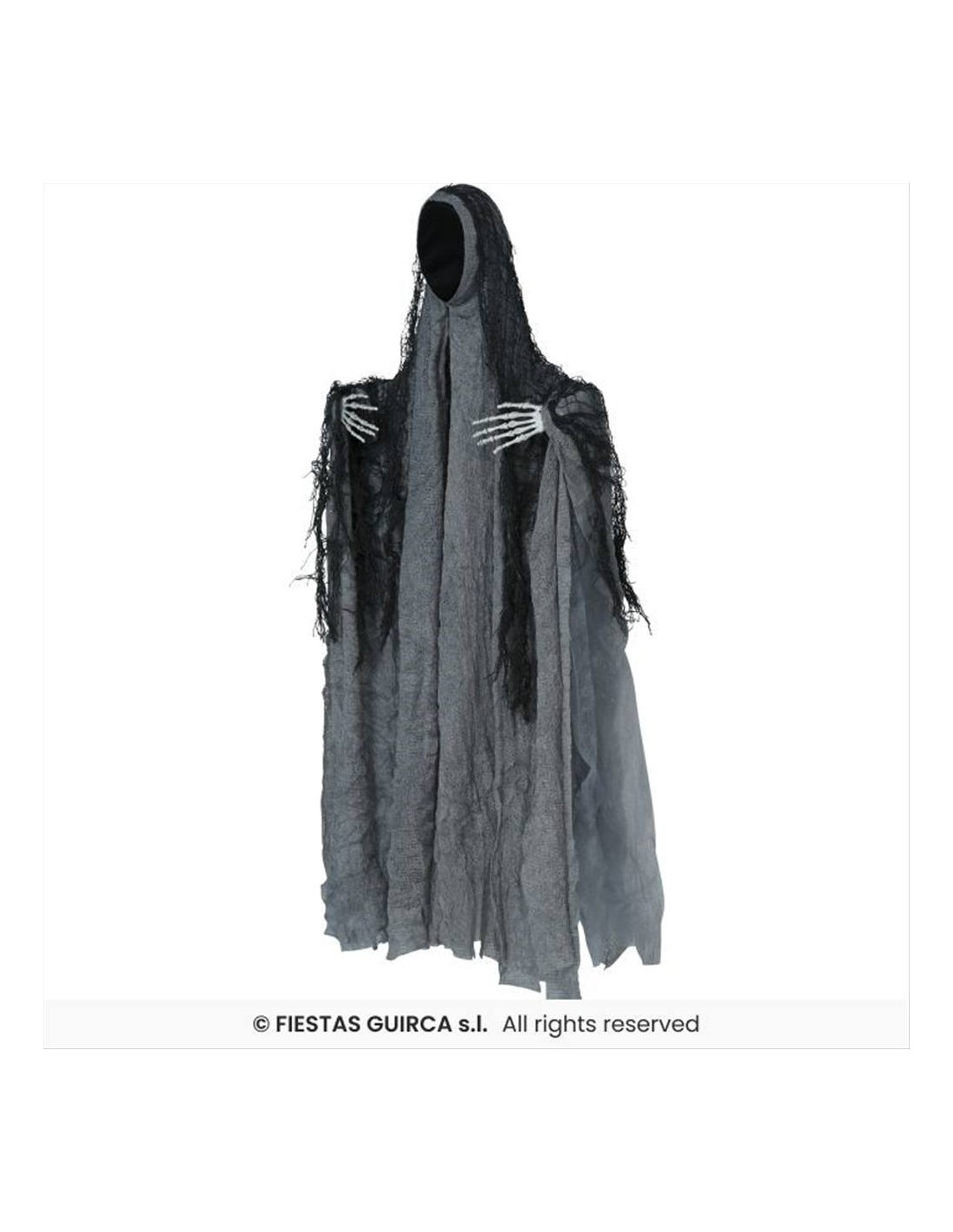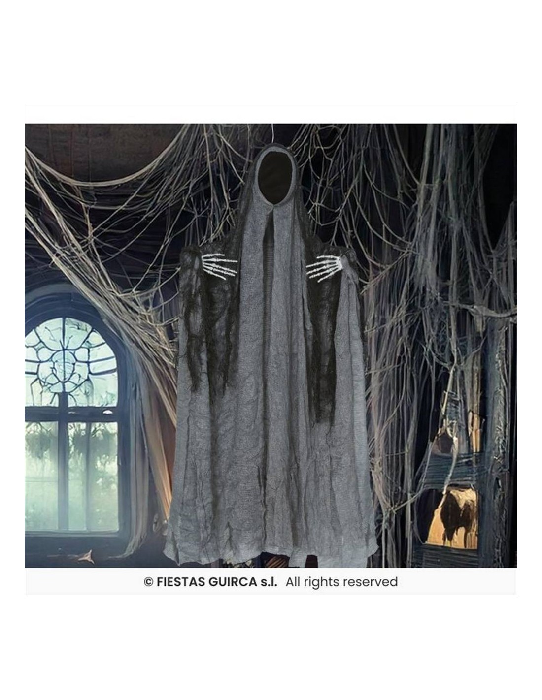 Aggiungi un tocco spettrale alle tue decorazioni con questo fantasma con tunica grigia da 50 cm! Realizzato in metallo, poliestere e pvc, unisce resistenza e leggerezza per poterlo appendere o posizionare ovunque.