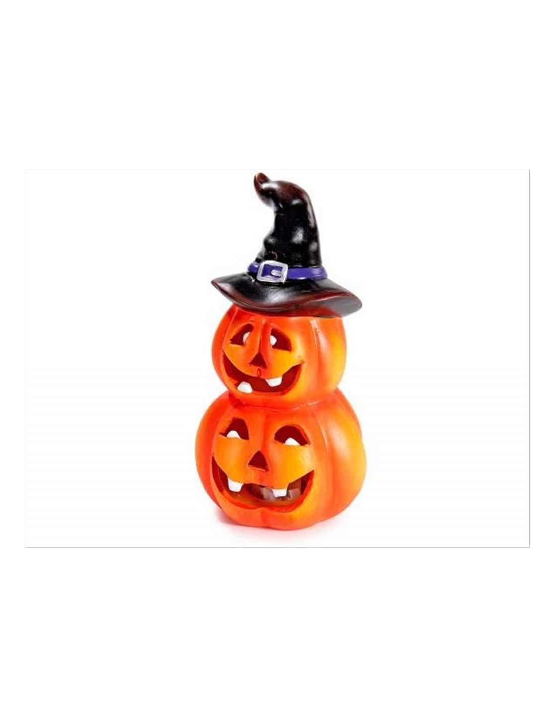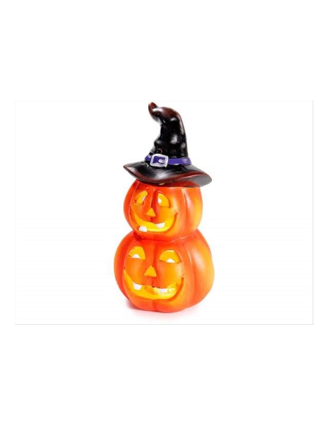 Zucche di Halloween impilate con Cappello e LED H16,5cm
