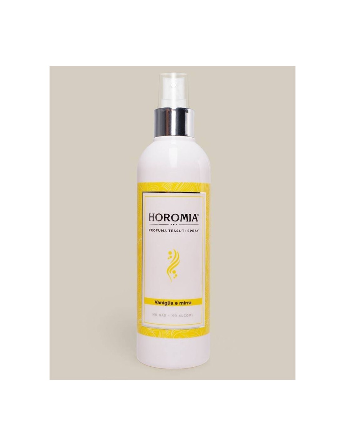 FRAGRANZA VANIGLIA E MIRRA Grazie alla sua innovativa miscela studiata SENZA l’aggiunta di ALCOOL e GAS è adatta a tutti i tipi di tessuti, anche quelli più delicati come seta e cachemire, non macchia e non lascia aloni. Contiene inoltre molecole che NEUTRALIZZANO i cattivi odori. Ideale per tendaggi, interni auto, tappezzerie, e per tutto il tuo bucato. Lasciati avvolgere dalle fragranze Horomia, la tua vita sarà persuasa da emozioni profumate che non vorrai mai più lasciare.