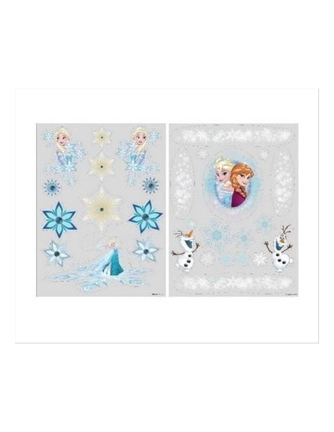 Vetrofania di Frozen in due varianti tra cui poter scegliere. Puoi posizionare al vetro i personaggi e i fiocchi come preferisci.