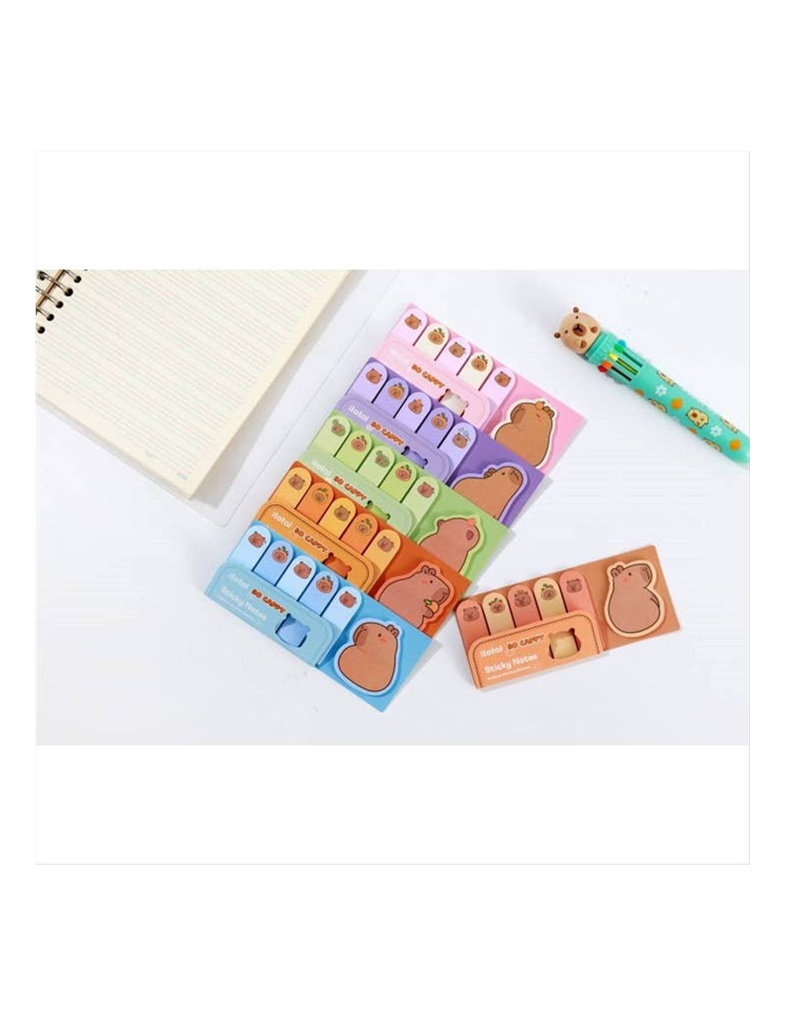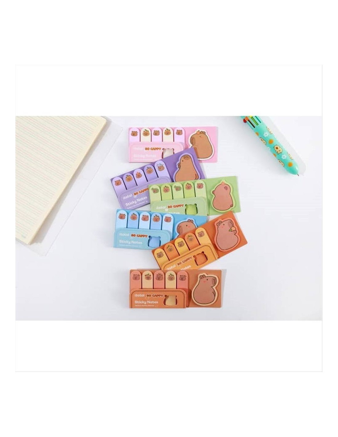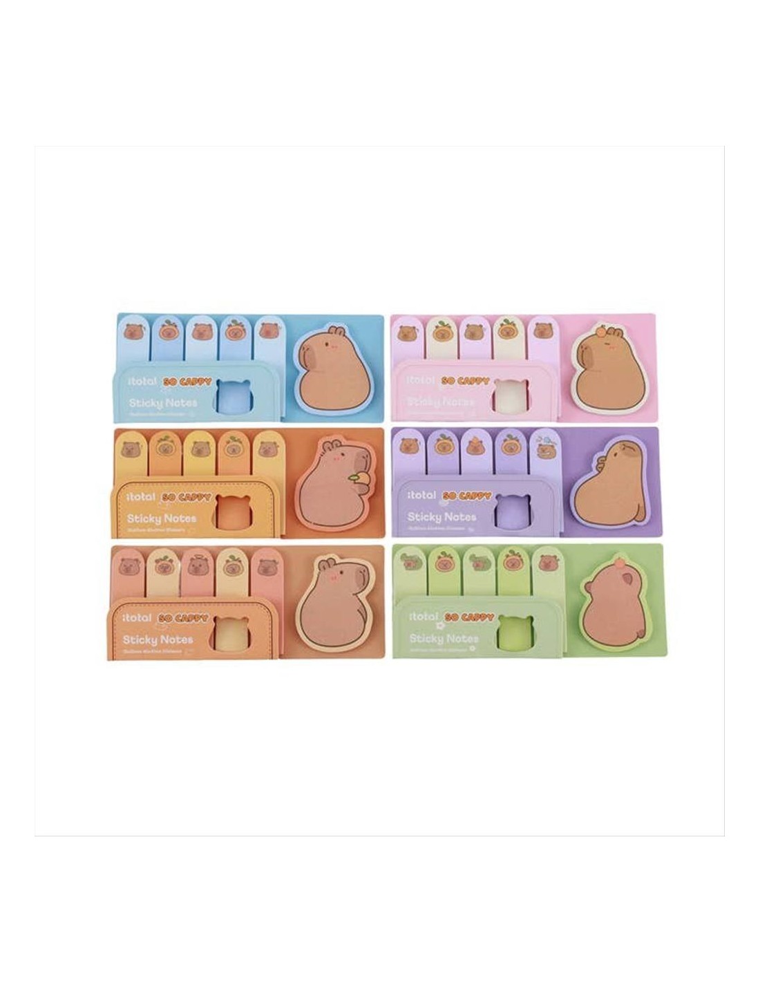 Il set include sticky notes e tabs adesivi con 6 modelli Capybara adorabili, ideali per evidenziare pagine, segnare promemoria e organizzare planner, agende e quaderni con un tocco creativo.