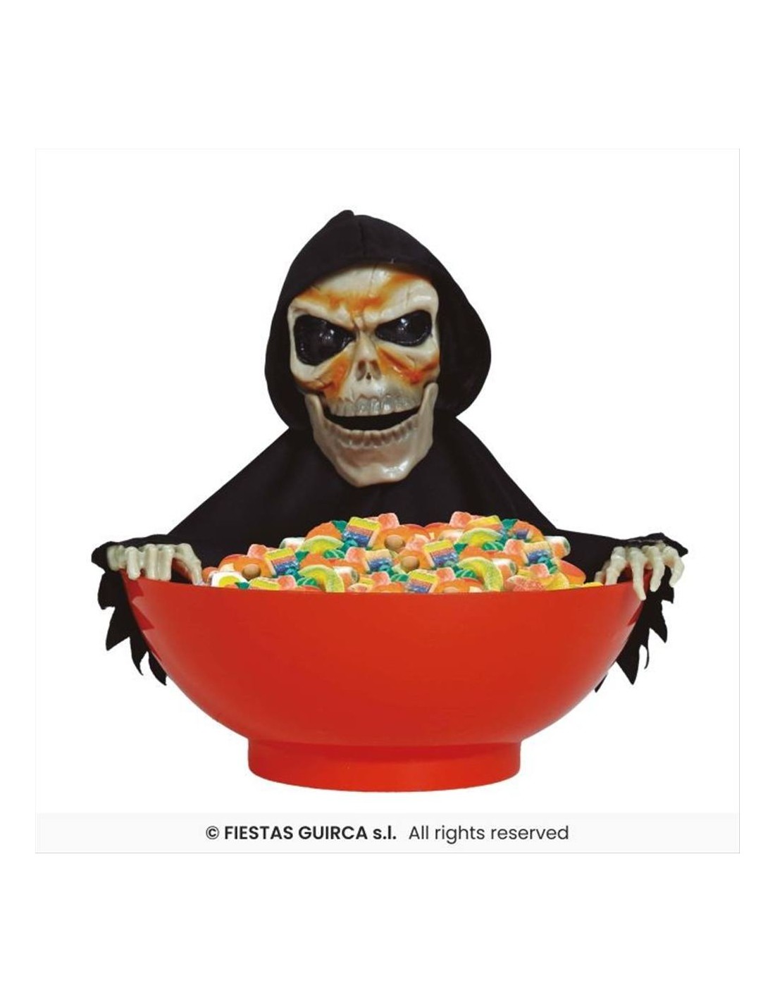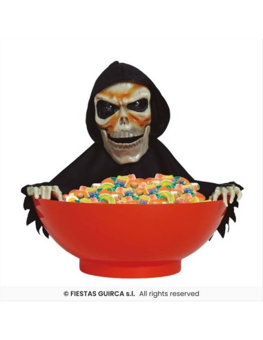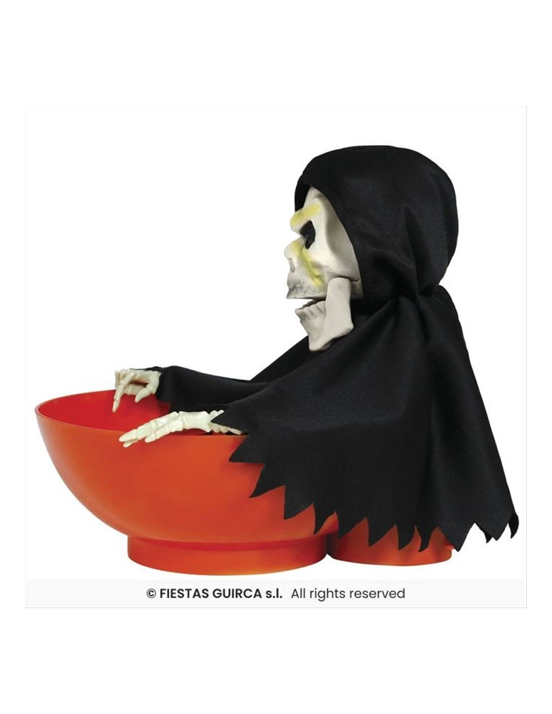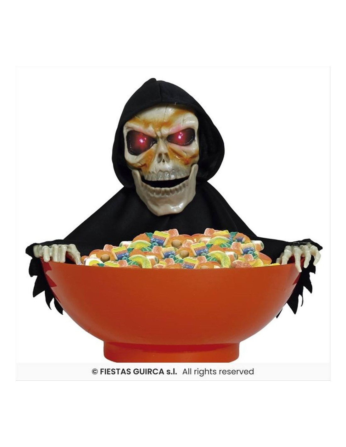 Realizzata in PVC resistente, questa decorazione animata presenta un simpatico scheletro che si illumina e si muove, creando un effetto spettacolare mentre custodisce caramelle e dolcetti. Basta attivarla per vederla “prendere vita' e animare la stanza con la sua risata sinistra (ma irresistibile!).