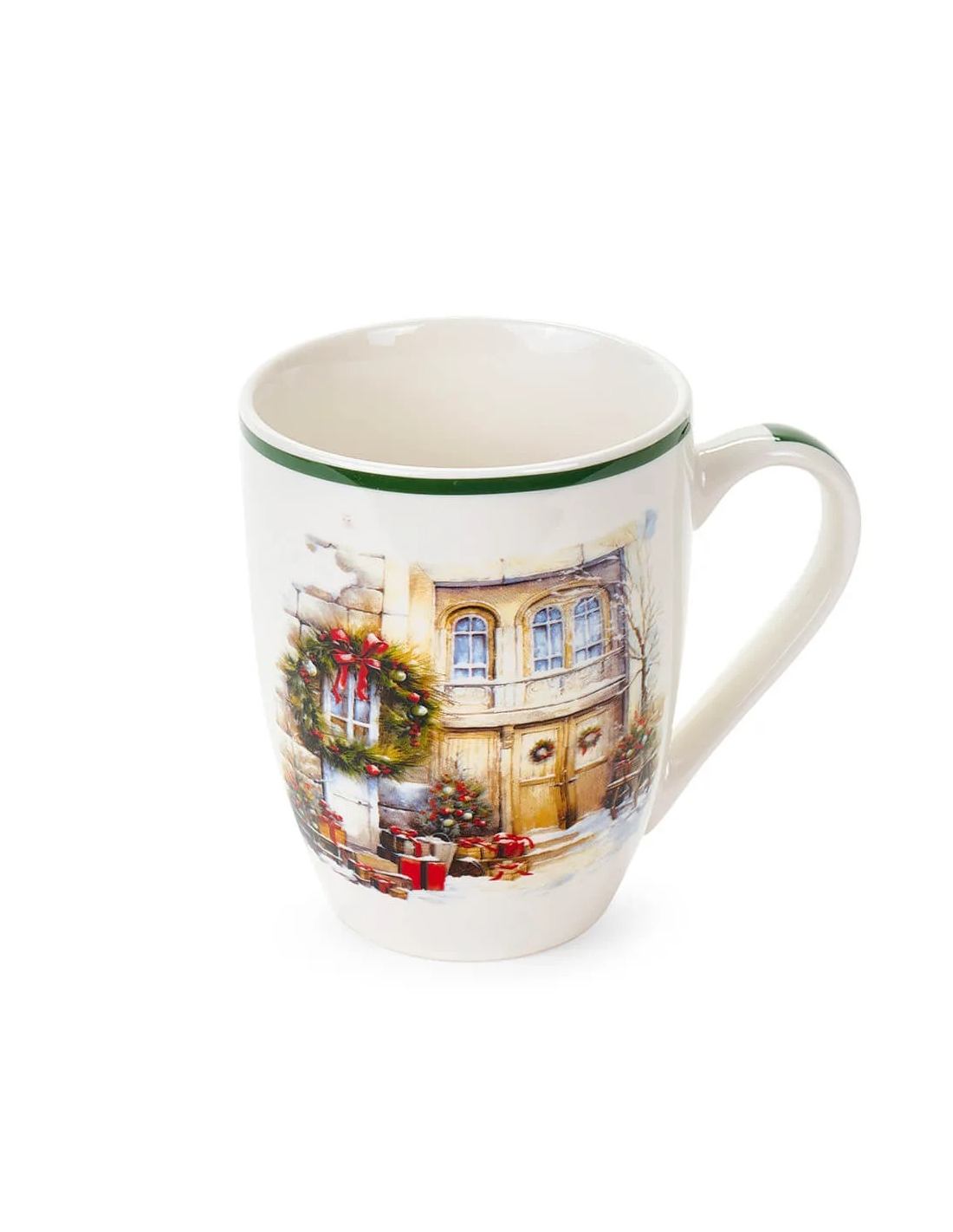 Le decorazioni natalizie colorate e raffinate rendono questa tazza