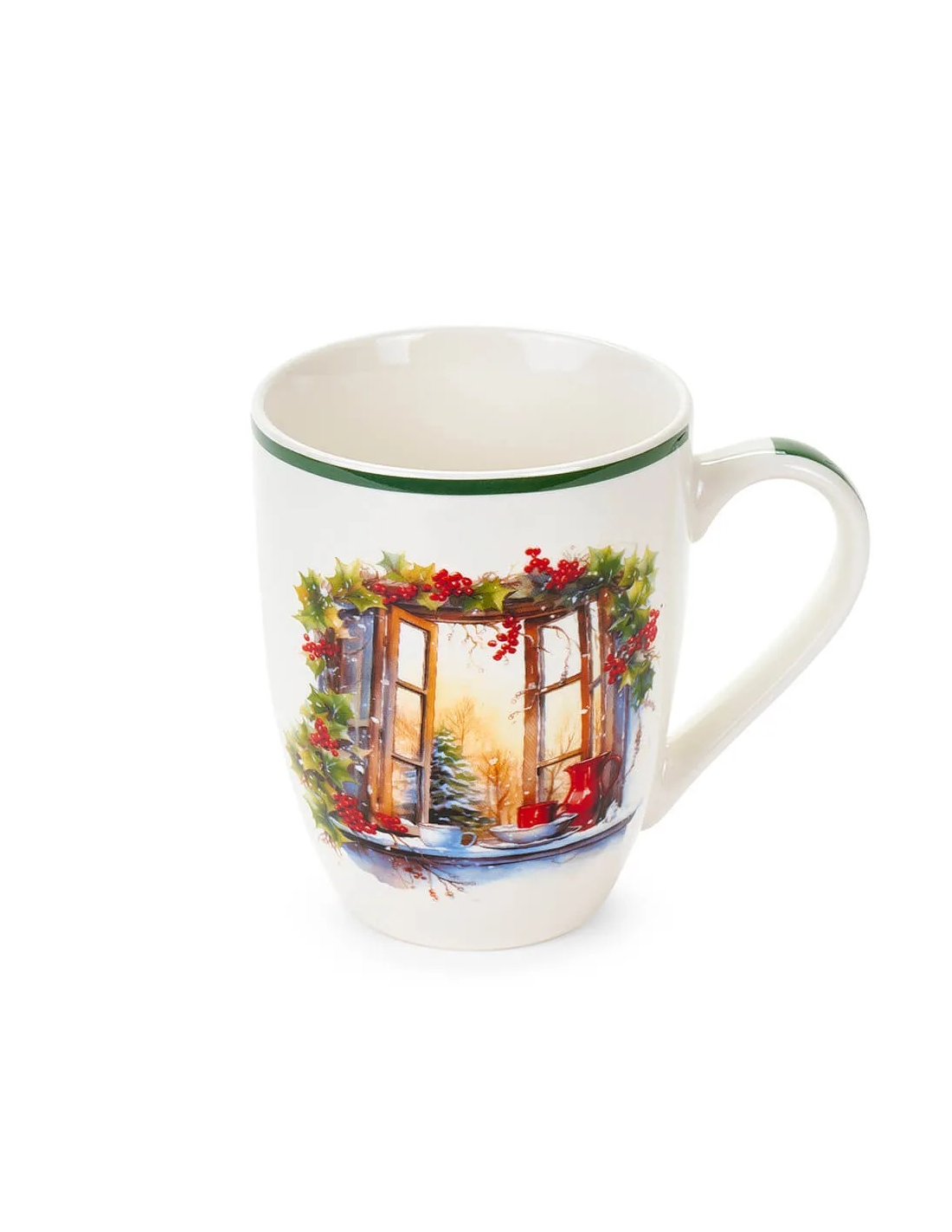 Le decorazioni natalizie colorate e raffinate rendono questa tazza non solo pratica ma anche un vero pezzo decorativo per la tua cucina o tavola delle feste.