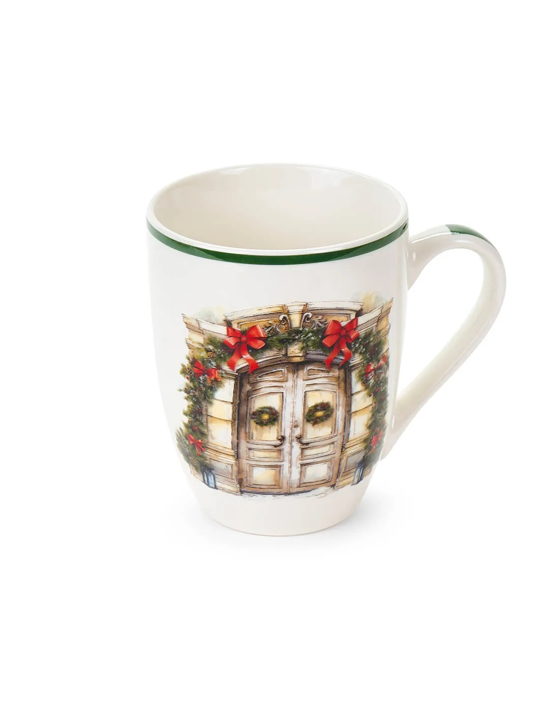 Le decorazioni natalizie colorate e raffinate rendono questa tazza