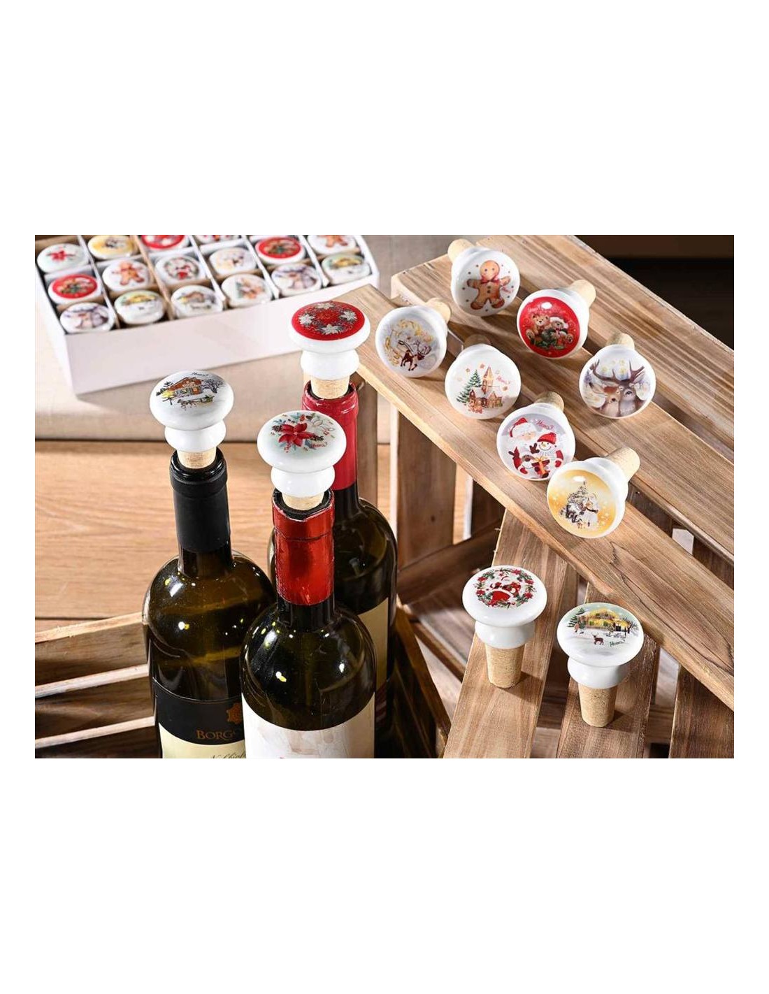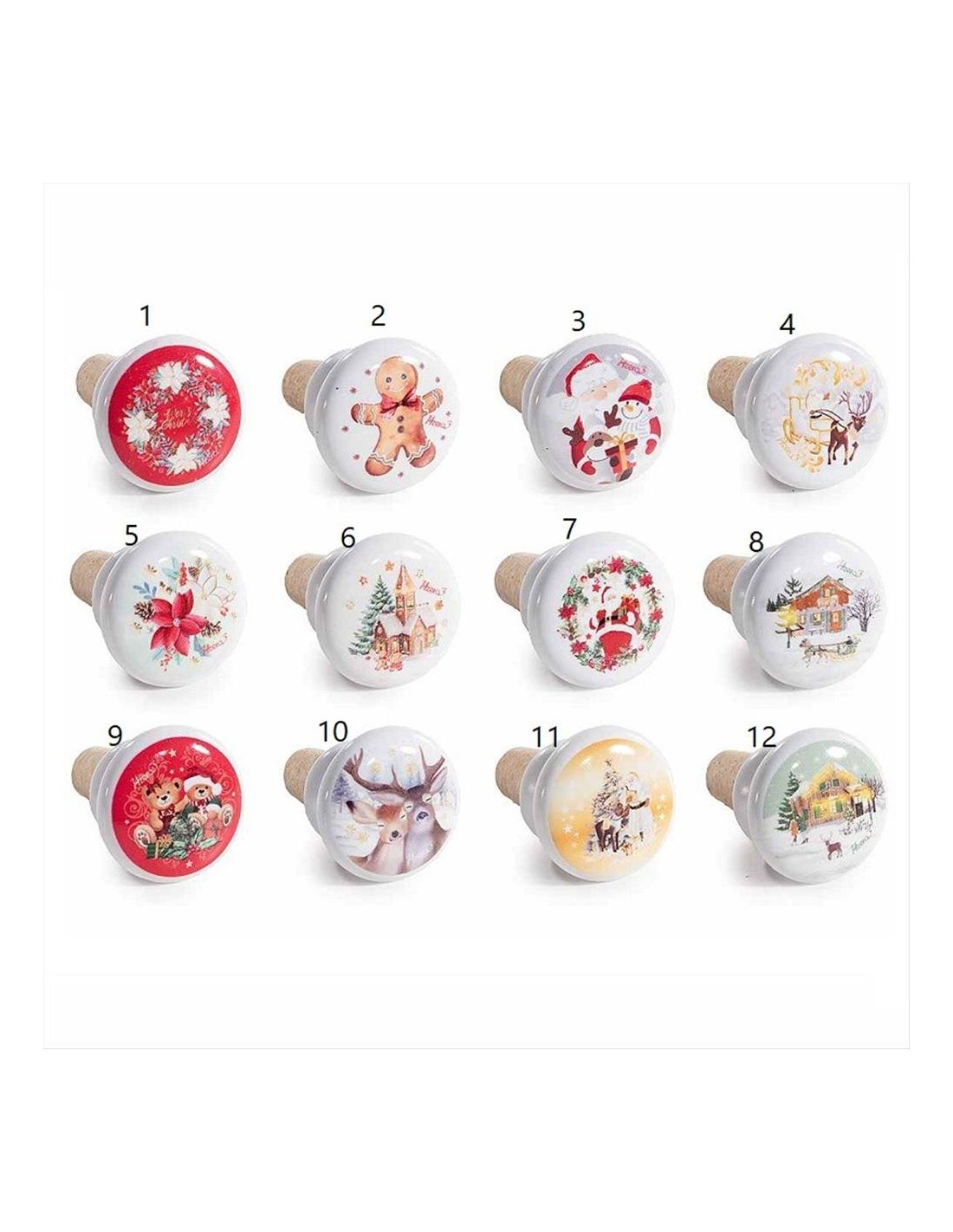 Tappo in sughero e ceramica con decori natalizi H3cm - 12 varianti (1pz)