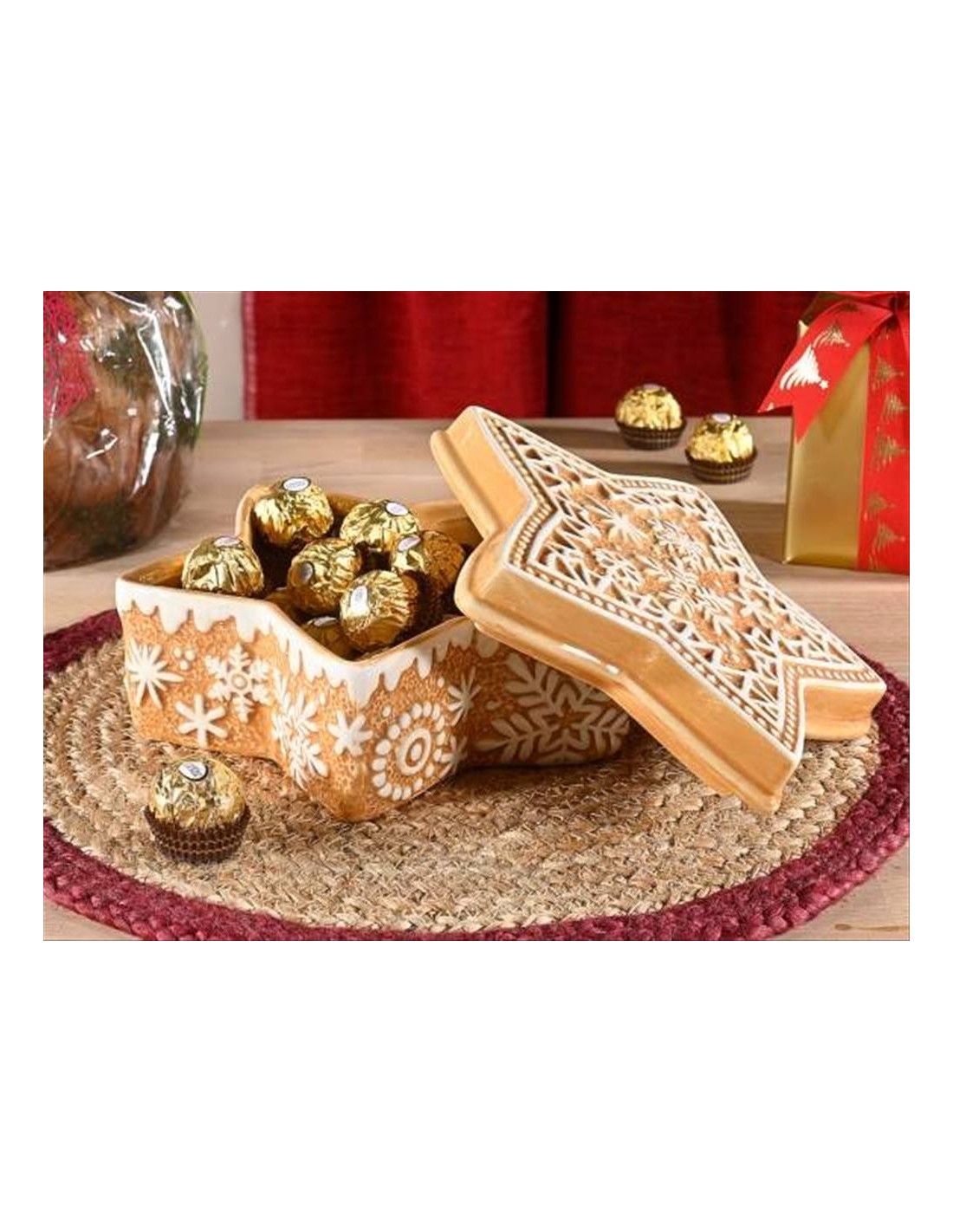 Biscottiera natalizia a stella in ceramica pan di zenzero - L20 cm 🍪⭐
