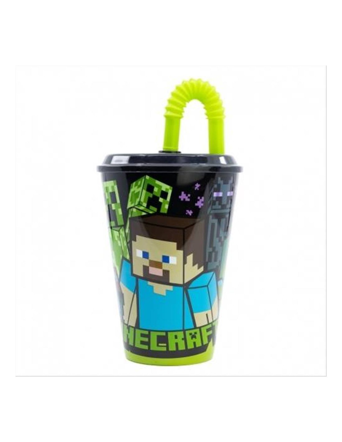Bicchiere Minecraft con cannuccia pieghevole 430 ml