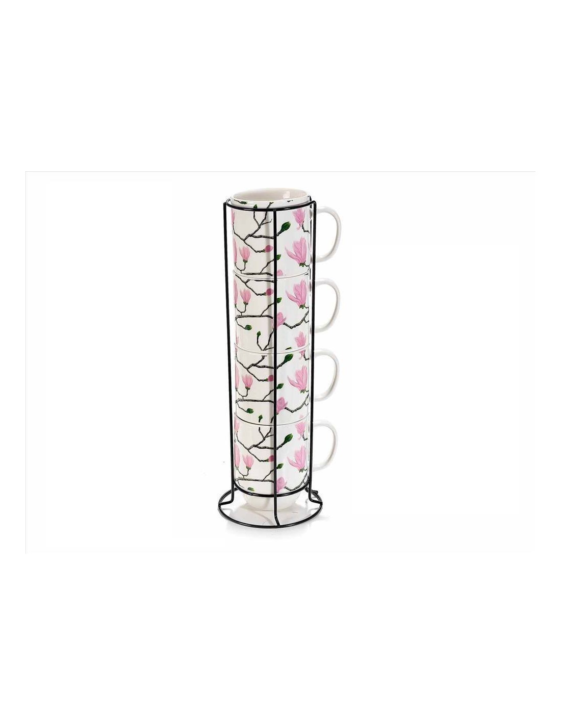 Set 4 tazze con portatazze - Fiori di magnolia
