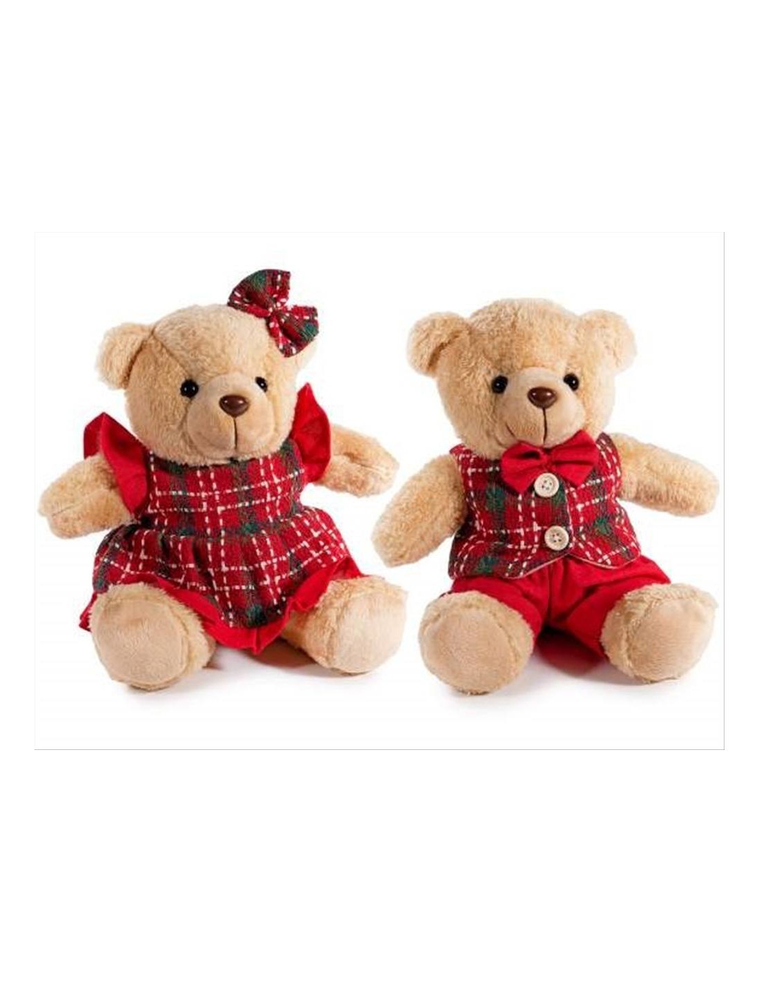 Orsetto con vestito scozzese H22cm - 2 varianti (1pz)