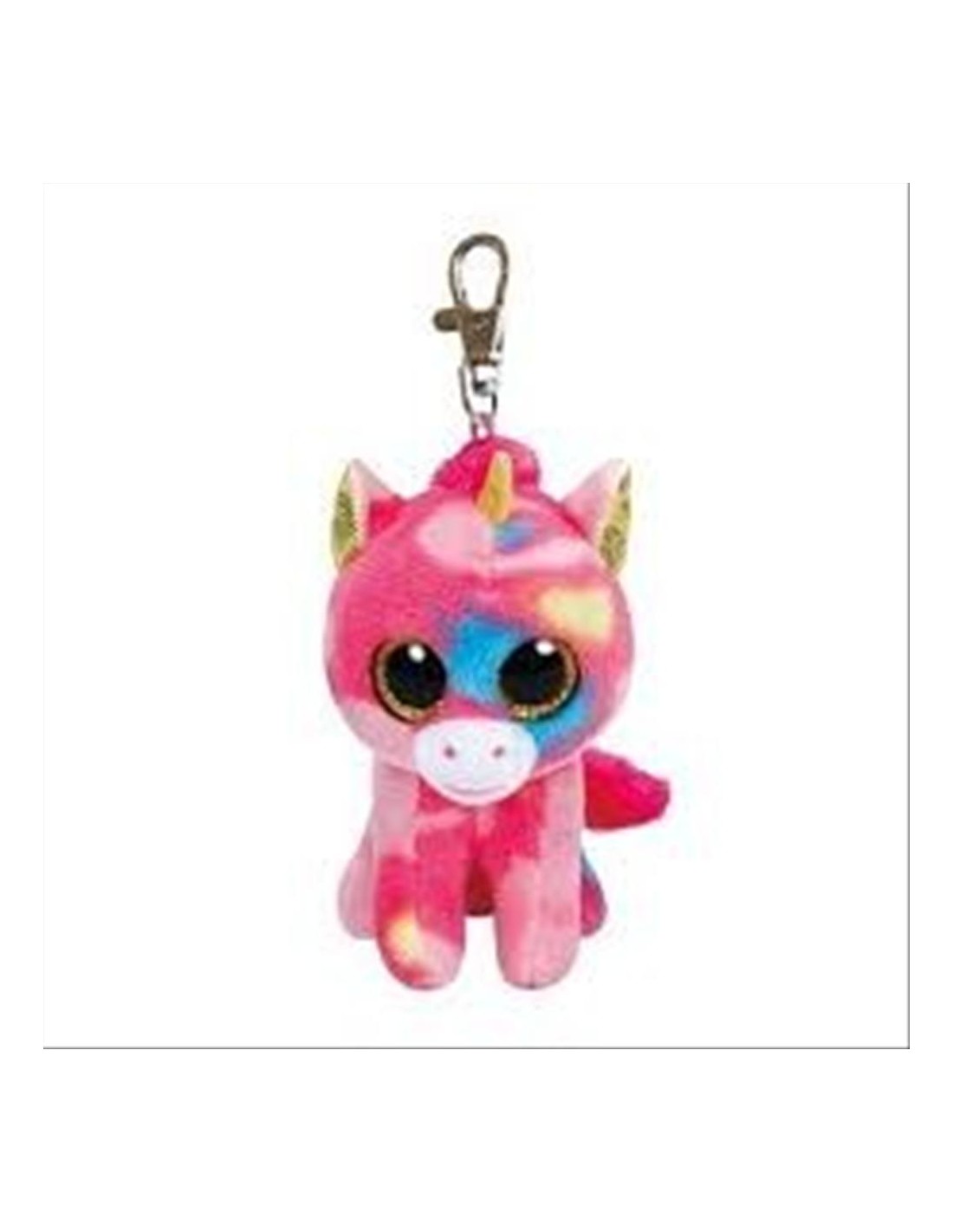 Alta 8,5 cm, questa versione mini con moschettone in plastica è perfetta per essere agganciata a zaini, chiavi o astucci. Con il suo manto multicolore arcobaleno, dettagli glitterati e grandi occhi rosa brillanti, Fantasia trasforma ogni giornata in un’avventura magica. Realizzata con il morbido tessuto Ty Silk, unisce qualità e dolcezza.