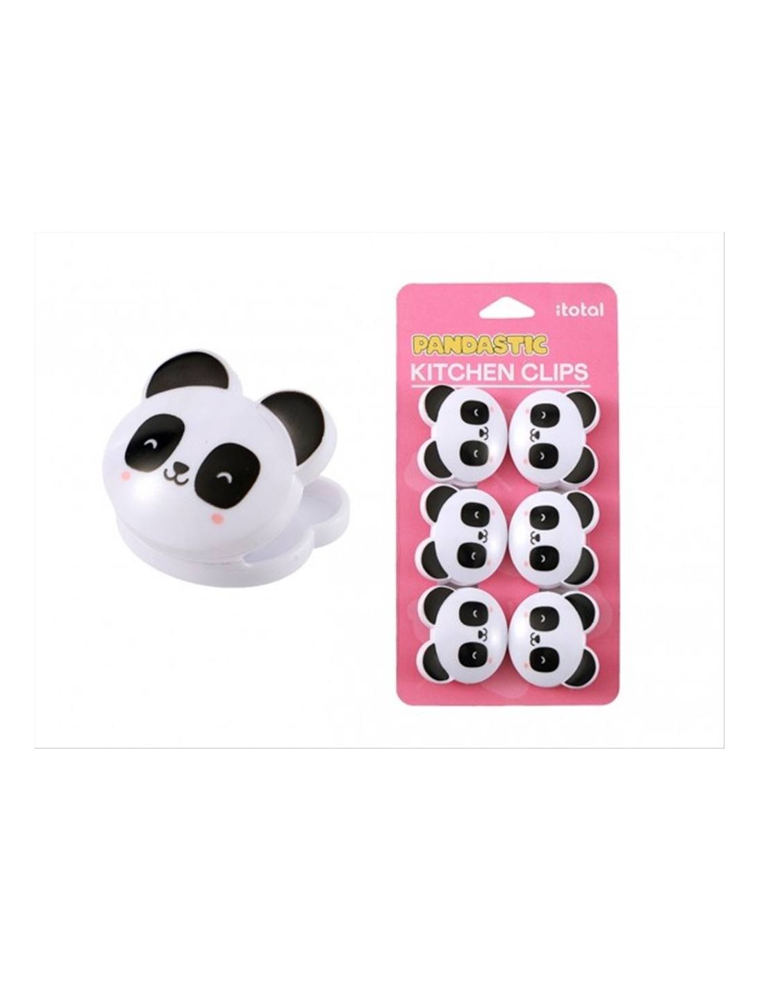 Clip chiudibusta Panda set 6 pezzi. Mollette kawaii per alimenti pratiche e originali, perfette come idea regalo utile su Diamante Rosa.