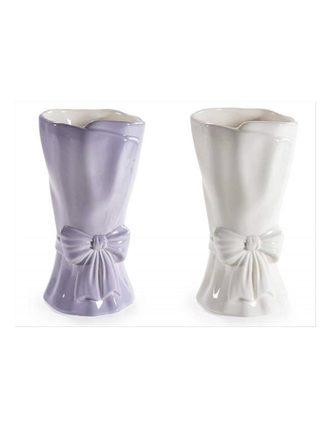 Vaso portafiori colorato con fiocco H21cm - 2 colori (1pz)