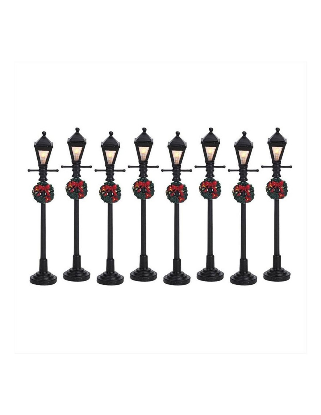 Dai luce e atmosfera al tuo villaggio natalizio con Gas Lantern Street Lamp Set 8pz 64500 Lemax!